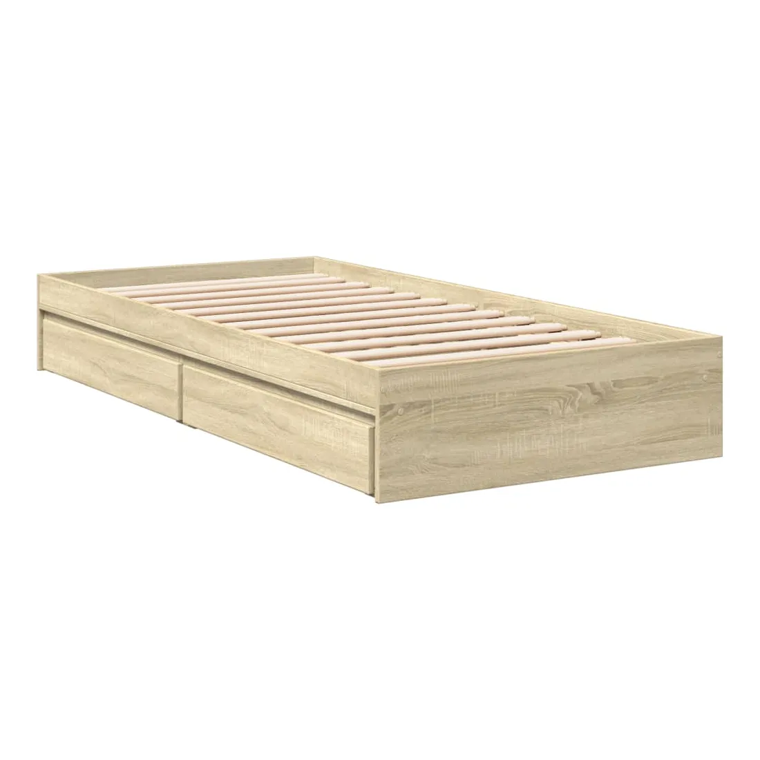 Ajoutez une touche moderne à votre chambre à coucher avec ce cadre de lit avec tiroirs ! Il apportera une touche pratique et décorative à votre espace de vie. Matériau durable : le cadre de lit est fabriquée en bois d'ingénierie. Le bois d'ingénierie est d'une qualité exceptionnelle avec une surface lisse et présente également de la résistance, de la stabilité et de la résistance à l'humidité.Lattes robustes : les lattes de contreplaqué assurent une bonne répartition du poids, garantissant que le matelas reste en place à chaque torsion de votre corps pendant le sommeil.Fonction de rangement : les tiroirs de lit inclus offrent suffisamment d'espace de rangement pour ranger vos articles essentiels, gardant votre pièce propre et bien rangée. Bon à savoir :Un matelas n'est pas inclus avec ce lit. Nous offrons une sélection variée de matelas. Vous pouvez consulter notre boutique pour trouver un matelas assorti.