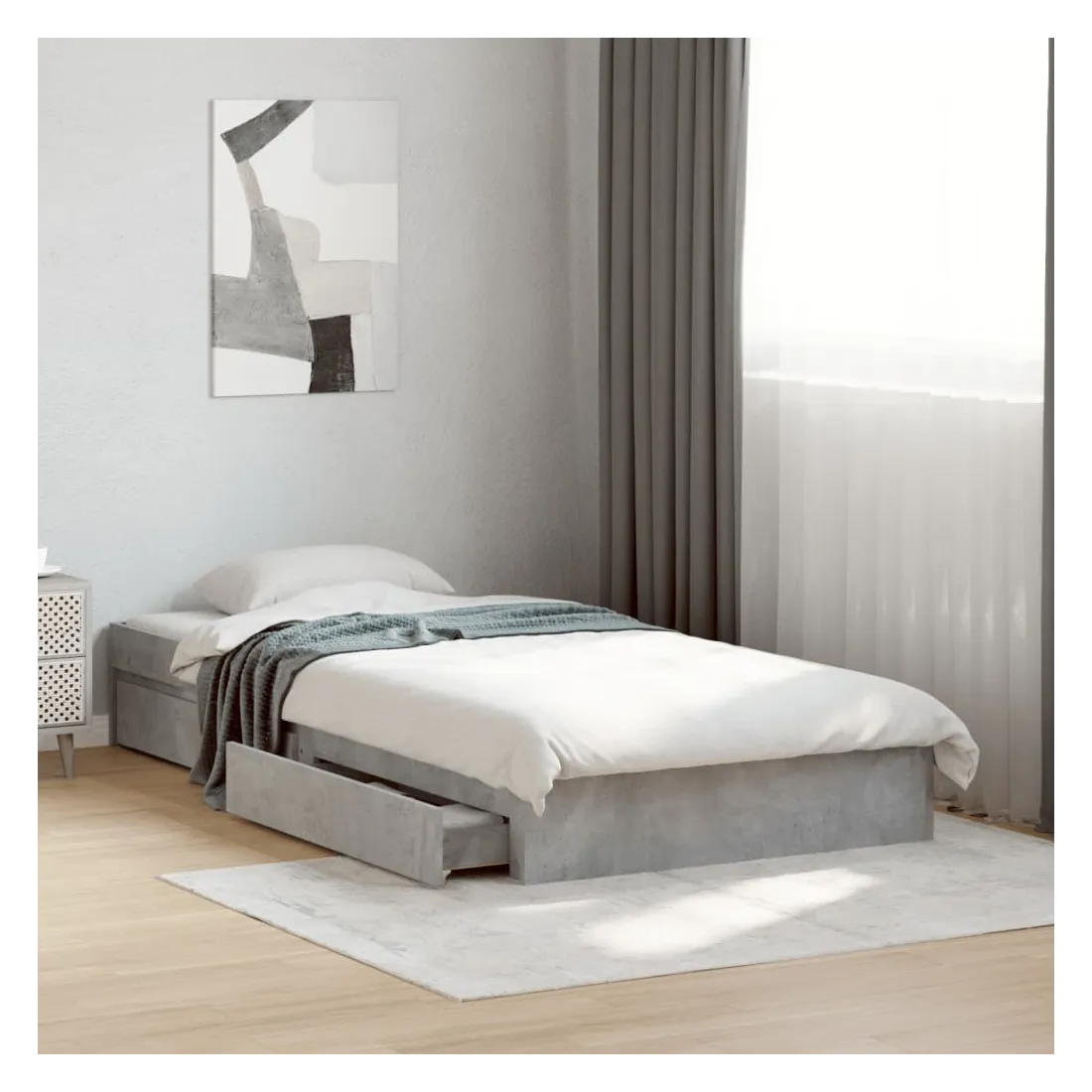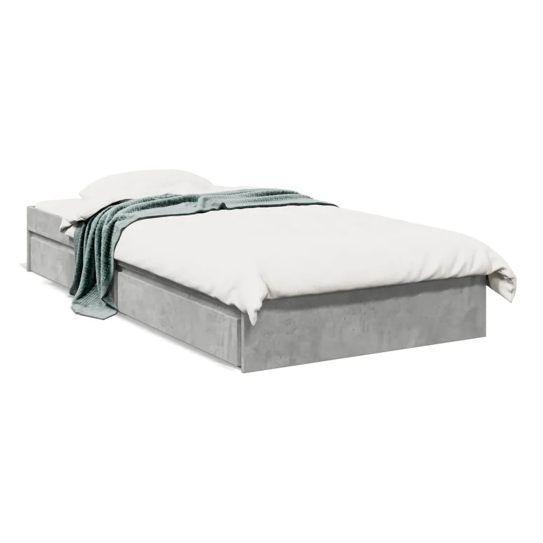Cadre de lit avec tiroirs sans matelas gris béton 100x200 cm