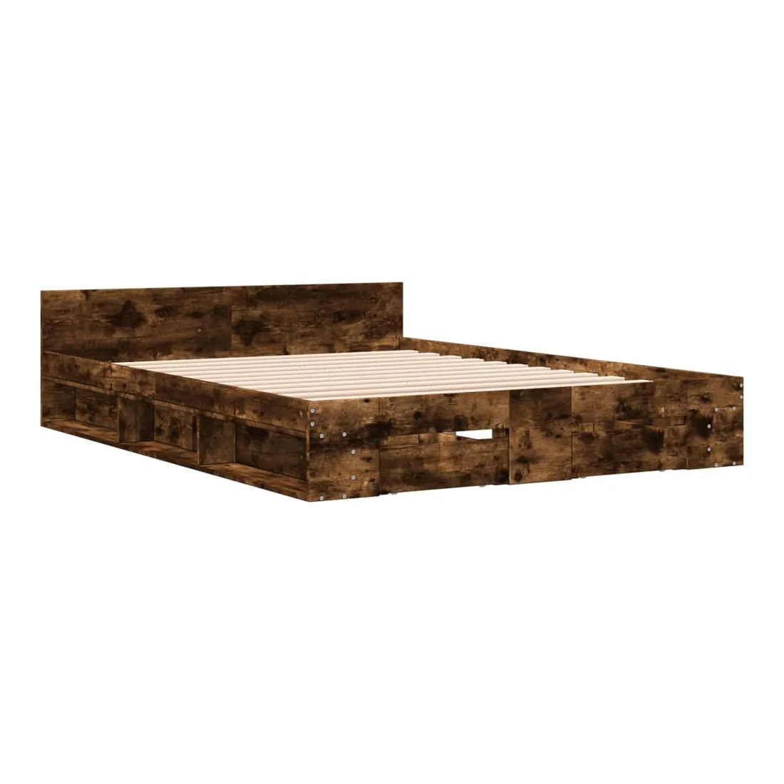 Ajoutez une touche moderne à votre chambre à coucher avec ce cadre de lit avec tiroirs ! Il apportera une touche pratique et décorative à votre espace de vie. Matériau durable : le cadre de lit est fabriquée en bois d'ingénierie. Le bois d'ingénierie est d'une qualité exceptionnelle avec une surface lisse et présente également de la résistance, de la stabilité et de la résistance à l'humidité.Lattes robustes : les lattes de contreplaqué assurent une bonne répartition du poids, garantissant que le matelas reste en place à chaque torsion de votre corps pendant le sommeil.Fonction de rangement : les tiroirs de lit et les compartiments latéraux inclus offrent suffisamment d'espace de rangement pour ranger vos articles essentiels, gardant votre pièce propre et bien rangée. Bon à savoir :Un matelas n'est pas inclus avec ce lit. Nous offrons une sélection variée de matelas. Vous pouvez consulter notre boutique pour trouver un matelas assorti.