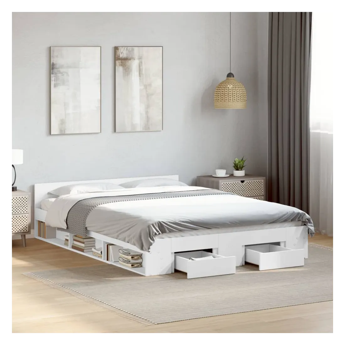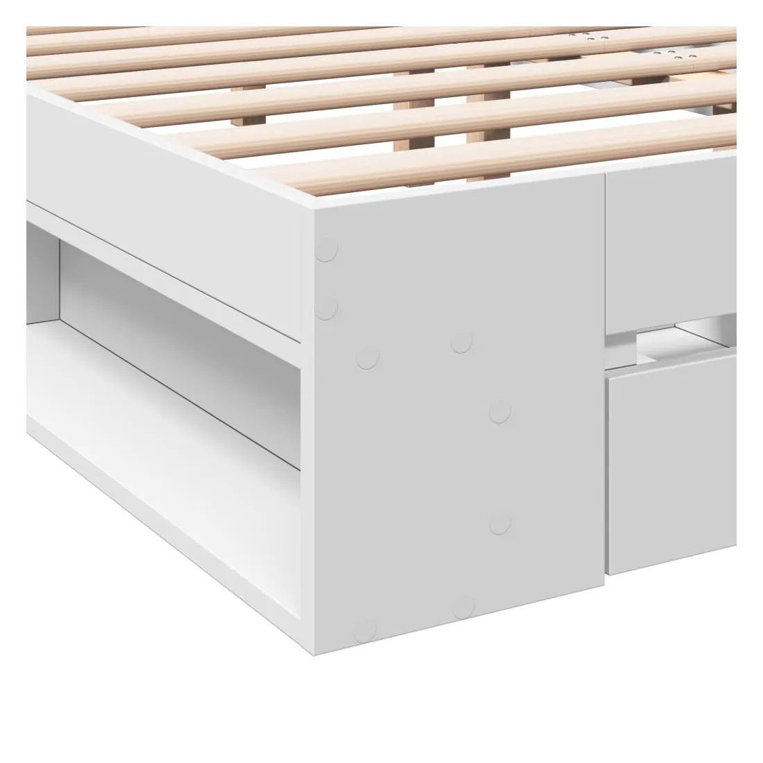 Ajoutez une touche moderne à votre chambre à coucher avec ce cadre de lit avec tiroirs ! Il apportera une touche pratique et décorative à votre espace de vie. Matériau durable : le cadre de lit est fabriquée en bois d'ingénierie. Le bois d'ingénierie est d'une qualité exceptionnelle avec une surface lisse et présente également de la résistance, de la stabilité et de la résistance à l'humidité.Lattes robustes : les lattes de contreplaqué assurent une bonne répartition du poids, garantissant que le matelas reste en place à chaque torsion de votre corps pendant le sommeil.Fonction de rangement : les tiroirs de lit et les compartiments latéraux inclus offrent suffisamment d'espace de rangement pour ranger vos articles essentiels, gardant votre pièce propre et bien rangée. Bon à savoir :Un matelas n'est pas inclus avec ce lit. Nous offrons une sélection variée de matelas. Vous pouvez consulter notre boutique pour trouver un matelas assorti.
