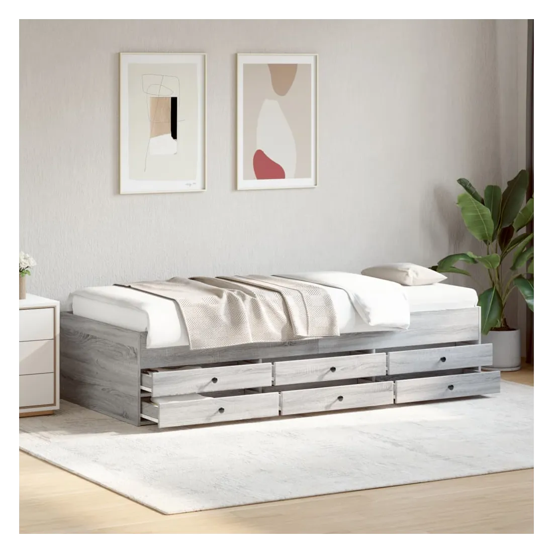Ce lit de repos 2 en 1 avec tiroirs, servant à la fois de canapé et de lit, constitue un ajout pratique et accrocheur à votre salon ou chambre à coucher. Méridienne polyvalente : Le canapé-lit fait office de canapé le jour ou de lit la nuit, ce qui constitue une solution pratique pour accueillir des invités et optimiser l'espace. Grand espace de rangement : ce lit d'appoint dispose de 6 tiroirs à roulettes qui offrent suffisamment d'espace pour ranger vos vêtements, chaussettes, jouets, coussins, etc.Construction solide : ce canapé-lit est doté d'un cadre robuste en bois d'ingénierie. Le bois d'ingénierie est d'une qualité exceptionnelle avec une surface lisse et se caractérise par sa solidité, sa stabilité et sa résistance à l'humidité. Bon à savoir :La livraison comprend uniquement un cadre de lit de jour. Le matelas n'est pas inclus. Vous pouvez consulter notre boutique pour trouver les matelas assortis.