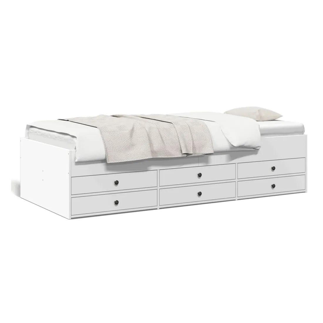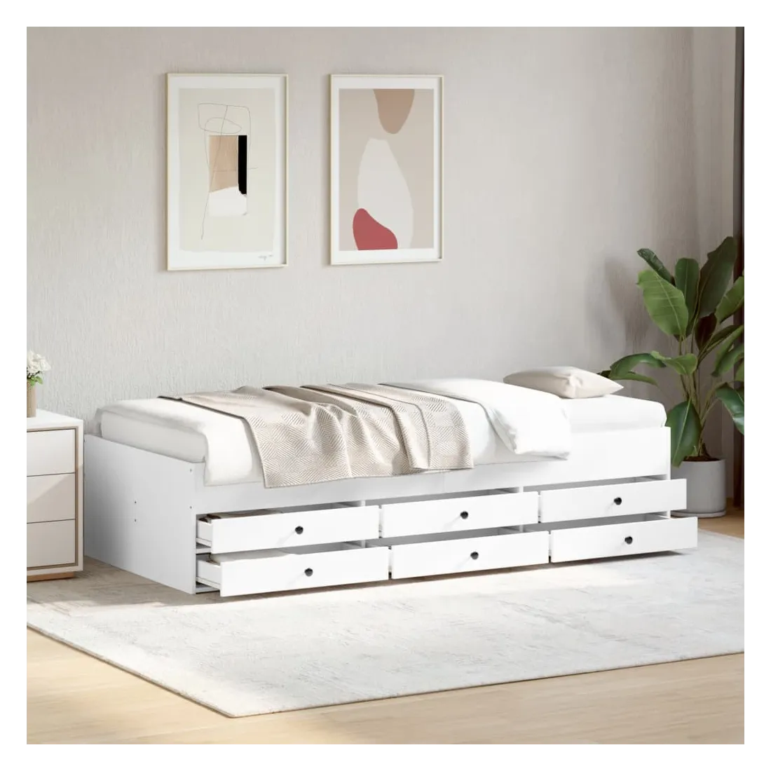 Ce lit de repos 2 en 1 avec tiroirs, servant à la fois de canapé et de lit, constitue un ajout pratique et accrocheur à votre salon ou chambre à coucher. Méridienne polyvalente : Le canapé-lit fait office de canapé le jour ou de lit la nuit, ce qui constitue une solution pratique pour accueillir des invités et optimiser l'espace. Grand espace de rangement : ce lit d'appoint dispose de 6 tiroirs à roulettes qui offrent suffisamment d'espace pour ranger vos vêtements, chaussettes, jouets, coussins, etc.Construction solide : ce canapé-lit est doté d'un cadre robuste en bois d'ingénierie. Le bois d'ingénierie est d'une qualité exceptionnelle avec une surface lisse et se caractérise par sa solidité, sa stabilité et sa résistance à l'humidité. Bon à savoir :La livraison comprend uniquement un cadre de lit de jour. Le matelas n'est pas inclus. Vous pouvez consulter notre boutique pour trouver les matelas assortis.