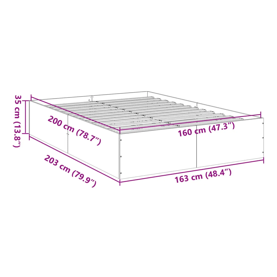 - Dimensions du matelas correspondant : 160 x 200 cm (l x L) (matelas non inclus)