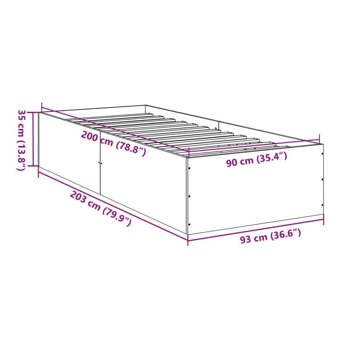 - Dimensions totales : 203 x 93 x 35 cm (L x l x H)