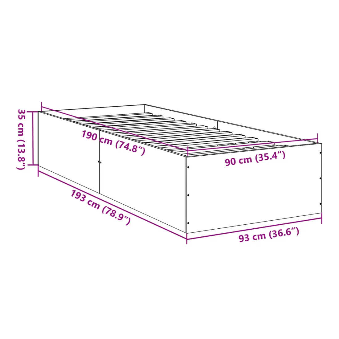- Dimensions totales : 193 x 93 x 35 cm (L x l x H)