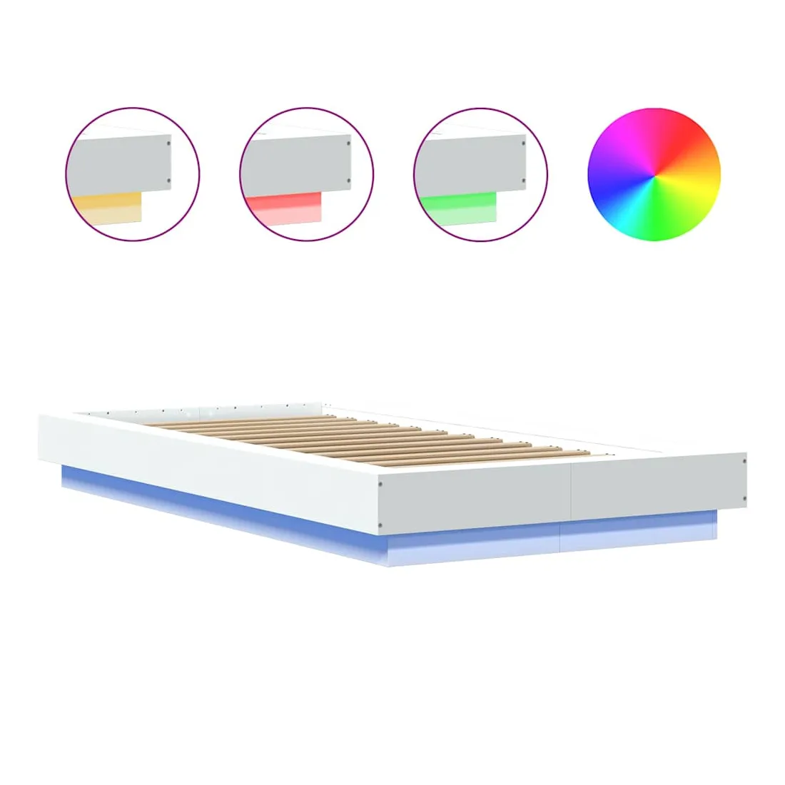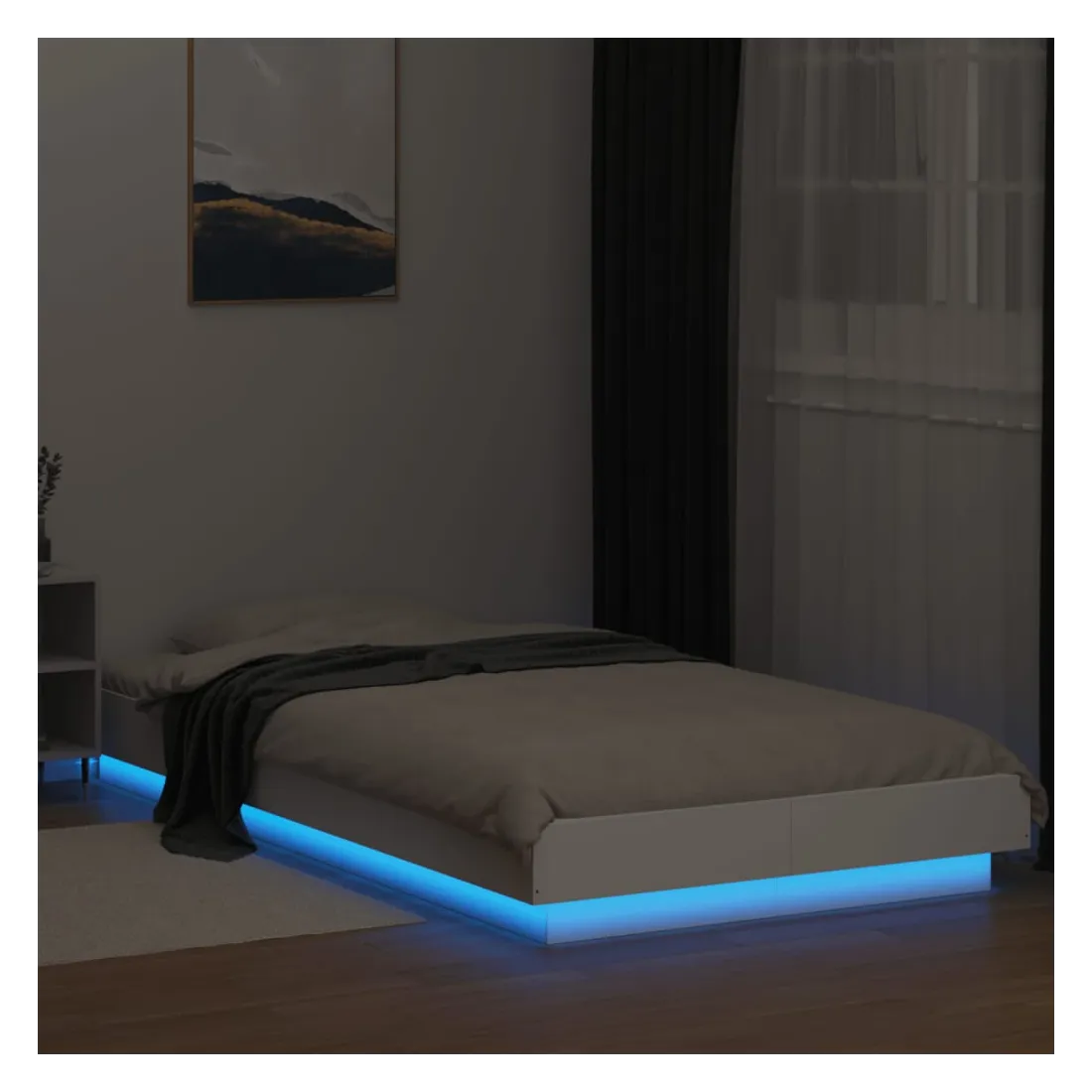 Obtenez une meilleure nuit de sommeil reposante grâce à ce cadre de lit avec lumières LED ! Il est un supplément accueillant à toute chambre à coucher. Matériau durable : le bois d'ingénierie est d'une qualité exceptionnelle avec une surface lisse et présente également résistance, stabilité et résistance à l'humidité. Lumières LED RVB : le cadre de lit est équipé de lumières LED RVB vibrantes. Avec divers menus personnalisables, vous pouvez changer sans effort la couleur des lumières et même les régler automatiquement. Ces lumières LED renforcent non seulement l'aspect contemporain du sommier, mais ajoutent également à son attrait tendance. Lattes robustes : les lattes de contreplaqué assurent une bonne répartition du poids, garantissant que le matelas reste en place à chaque torsion de votre corps pendant le sommeil. Bon à savoir :Un matelas n'est pas inclus avec ce lit. Nous offrons une sélection variée de matelas. Vous pouvez consulter notre boutique pour trouver un matelas assorti. Ce produit est doté d'un connecteur USB qui nécessite une source d'alimentation USB de 5V certifiée (non incluse).