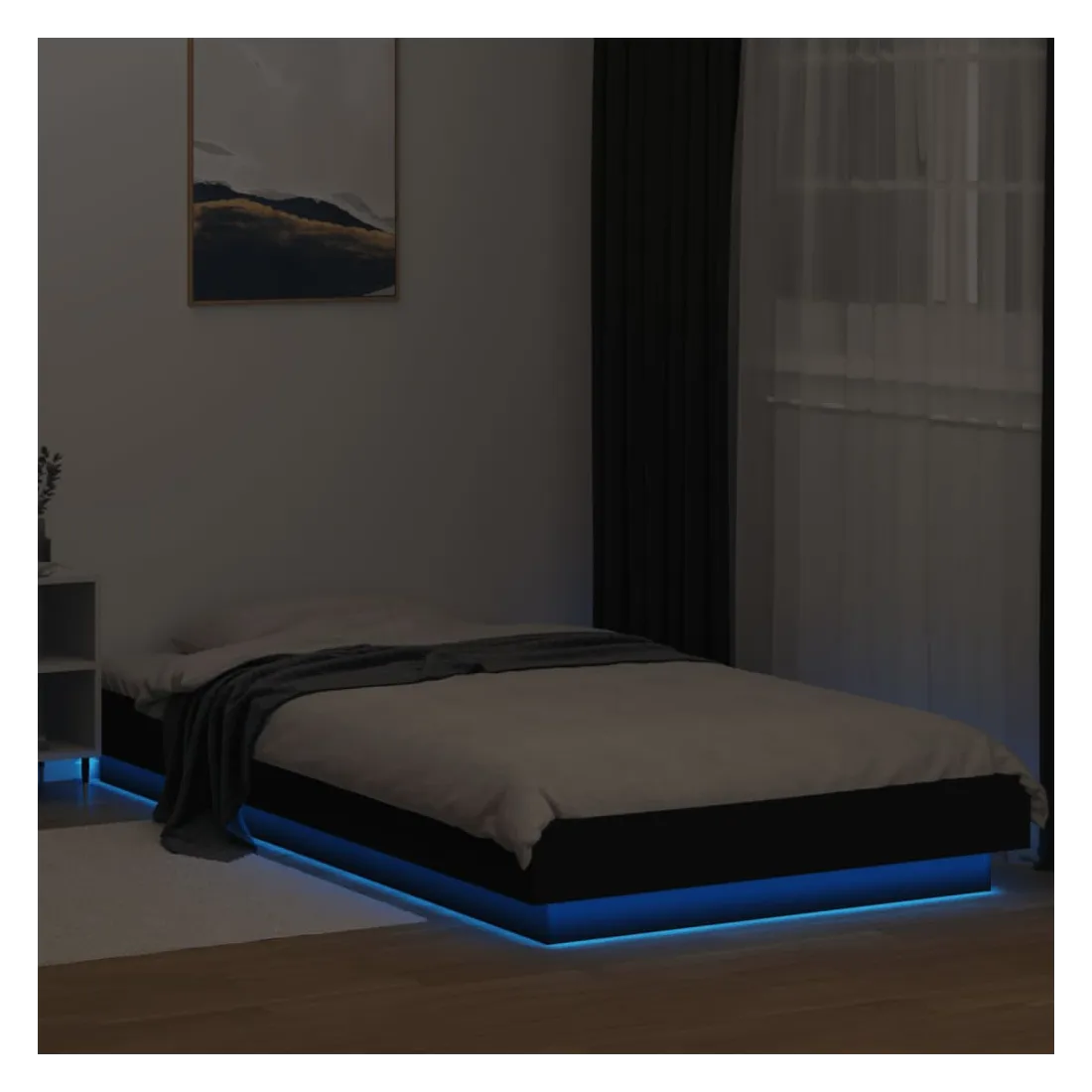 Obtenez une meilleure nuit de sommeil reposante grâce à ce cadre de lit avec lumières LED ! Il est un supplément accueillant à toute chambre à coucher. Matériau durable : le bois d'ingénierie est d'une qualité exceptionnelle avec une surface lisse et présente également résistance, stabilité et résistance à l'humidité. Lumières LED RVB : le cadre de lit est équipé de lumières LED RVB vibrantes. Avec divers menus personnalisables, vous pouvez changer sans effort la couleur des lumières et même les régler automatiquement. Ces lumières LED renforcent non seulement l'aspect contemporain du sommier, mais ajoutent également à son attrait tendance. Lattes robustes : les lattes de contreplaqué assurent une bonne répartition du poids, garantissant que le matelas reste en place à chaque torsion de votre corps pendant le sommeil. Bon à savoir :Un matelas n'est pas inclus avec ce lit. Nous offrons une sélection variée de matelas. Vous pouvez consulter notre boutique pour trouver un matelas assorti. Ce produit est doté d'un connecteur USB qui nécessite une source d'alimentation USB de 5V certifiée (non incluse).