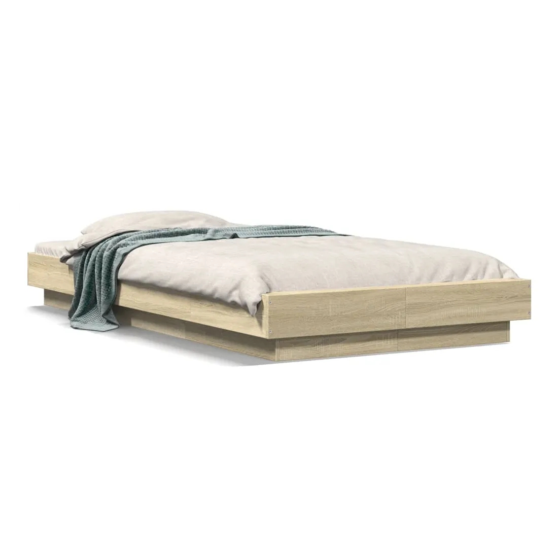 Obtenez une meilleure nuit de sommeil reposante grâce à ce cadre de lit avec lumières LED ! Il est un supplément accueillant à toute chambre à coucher. Matériau durable : le bois d'ingénierie est d'une qualité exceptionnelle avec une surface lisse et présente également résistance, stabilité et résistance à l'humidité. Lumières LED RVB : le cadre de lit est équipé de lumières LED RVB vibrantes. Avec divers menus personnalisables, vous pouvez changer sans effort la couleur des lumières et même les régler automatiquement. Ces lumières LED renforcent non seulement l'aspect contemporain du sommier, mais ajoutent également à son attrait tendance. Lattes robustes : les lattes de contreplaqué assurent une bonne répartition du poids, garantissant que le matelas reste en place à chaque torsion de votre corps pendant le sommeil. Bon à savoir :Un matelas n'est pas inclus avec ce lit. Nous offrons une sélection variée de matelas. Vous pouvez consulter notre boutique pour trouver un matelas assorti. Ce produit est doté d'un connecteur USB qui nécessite une source d'alimentation USB de 5V certifiée (non incluse).