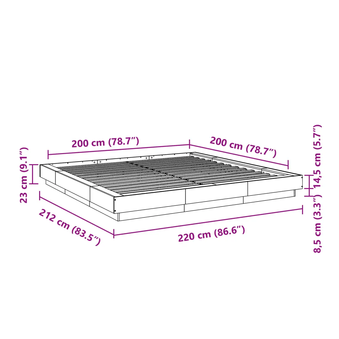 - Dimensions du matelas correspondant : 200 x 200 cm (l x L) (matelas non inclus)
