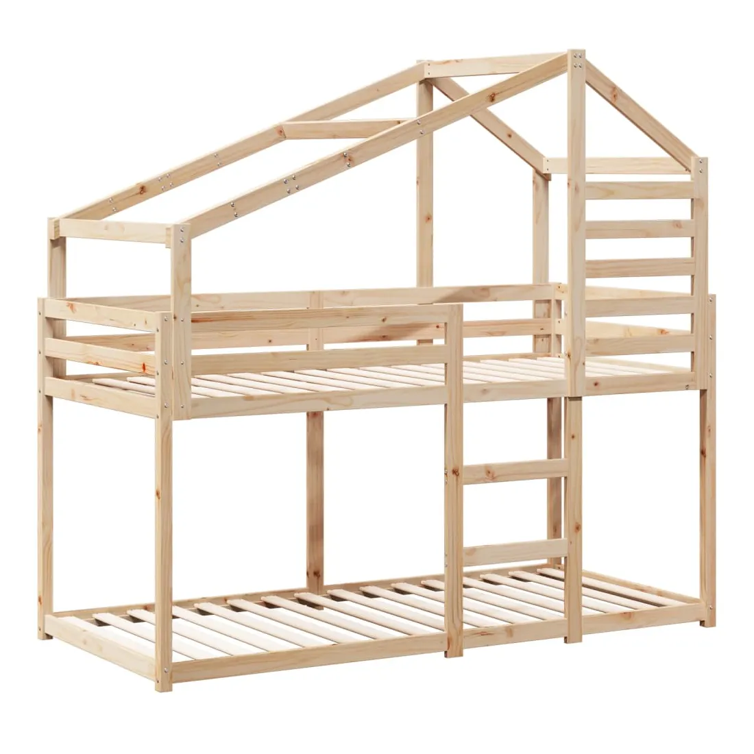 Ce lit superposé pour enfants avec toit est élégant et fonctionnel, ce qui en fait un ajout parfait à toute pièce avec un espace limité. Bois de pin massif : le bois de pin massif est un matériau naturel magnifique. Le bois de pin a un grain droit et les nœuds donnent au matériau son aspect caractéristique et rustique.Design sûr : le lit surélevé est conçu dans un souci de sécurité. Il comprend des garde-corps qui empêchent l'utilisateur de rouler pendant son sommeil.Très amusant : en combinant le toit avec le lit de votre enfant, vous pouvez créer une cachette qui permettra à votre enfant de s'amuser à l'heure du coucher. Cette addition innovante non seulement sera un point focal passionnant, mais aussi apportera de la fantaisie et de l'amusement dans la chambre d'enfant.Convient aux espaces limités : le cadre de lit est un excellent choix pour toute pièce dont l'espace est limité, il fournit deux lits individuels avec un design compact.Porte latérale ouverte : le toit est doté d'une porte latérale ouverte qui permet à vos enfants d'entrer et de sortir facilement du lit. Bon à savoir :Un matelas n'est pas inclus avec ce lit. Nous offrons une sélection variée de matelas. Vous pouvez consulter notre boutique pour trouver un matelas assorti.