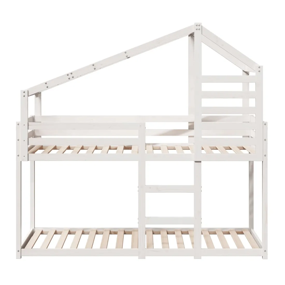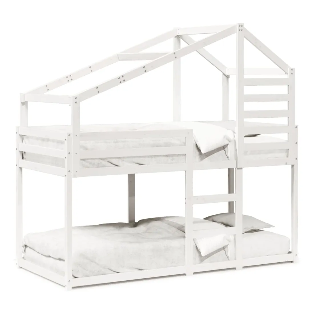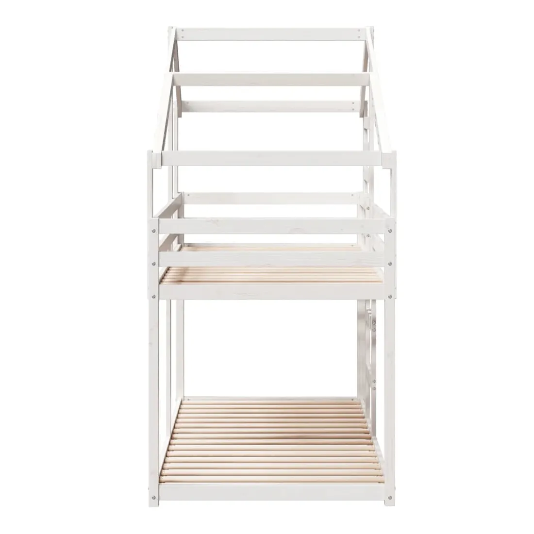 Ce lit superposé pour enfants avec toit est élégant et fonctionnel, ce qui en fait un ajout parfait à toute pièce avec un espace limité. Bois de pin massif : le bois de pin massif est un matériau naturel magnifique. Le bois de pin a un grain droit et les nœuds donnent au matériau son aspect caractéristique et rustique.Design sûr : le lit surélevé est conçu dans un souci de sécurité. Il comprend des garde-corps qui empêchent l'utilisateur de rouler pendant son sommeil.Lattes de contreplaqué : les lattes de contreplaqué assurent une bonne répartition du poids, garantissant que le matelas reste en place à chaque torsion de votre corps pendant le sommeil.Très amusant : en combinant le toit avec le lit de votre enfant, vous pouvez créer une cachette qui permettra à votre enfant de s'amuser à l'heure du coucher. Cette addition innovante non seulement sera un point focal passionnant, mais aussi apportera de la fantaisie et de l'amusement dans la chambre d'enfant.Convient aux espaces limités : le cadre de lit est un excellent choix pour toute pièce dont l'espace est limité, il fournit deux lits individuels avec un design compact.Porte latérale ouverte : le toit est doté d'une porte latérale ouverte qui permet à vos enfants d'entrer et de sortir facilement du lit. Bon à savoir :Un matelas n'est pas inclus avec ce lit. Nous offrons une sélection variée de matelas. Vous pouvez consulter notre boutique pour trouver un matelas assorti.