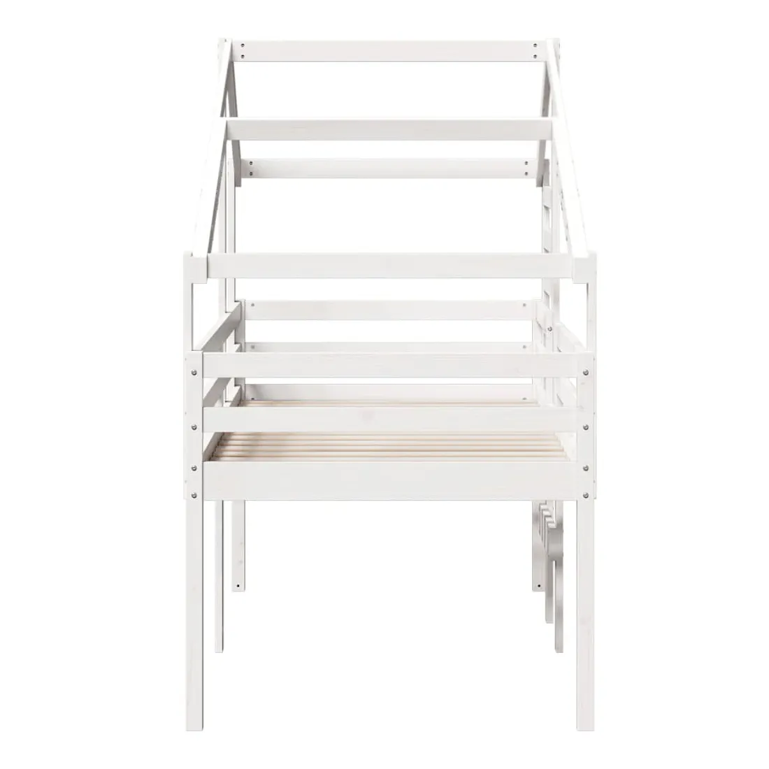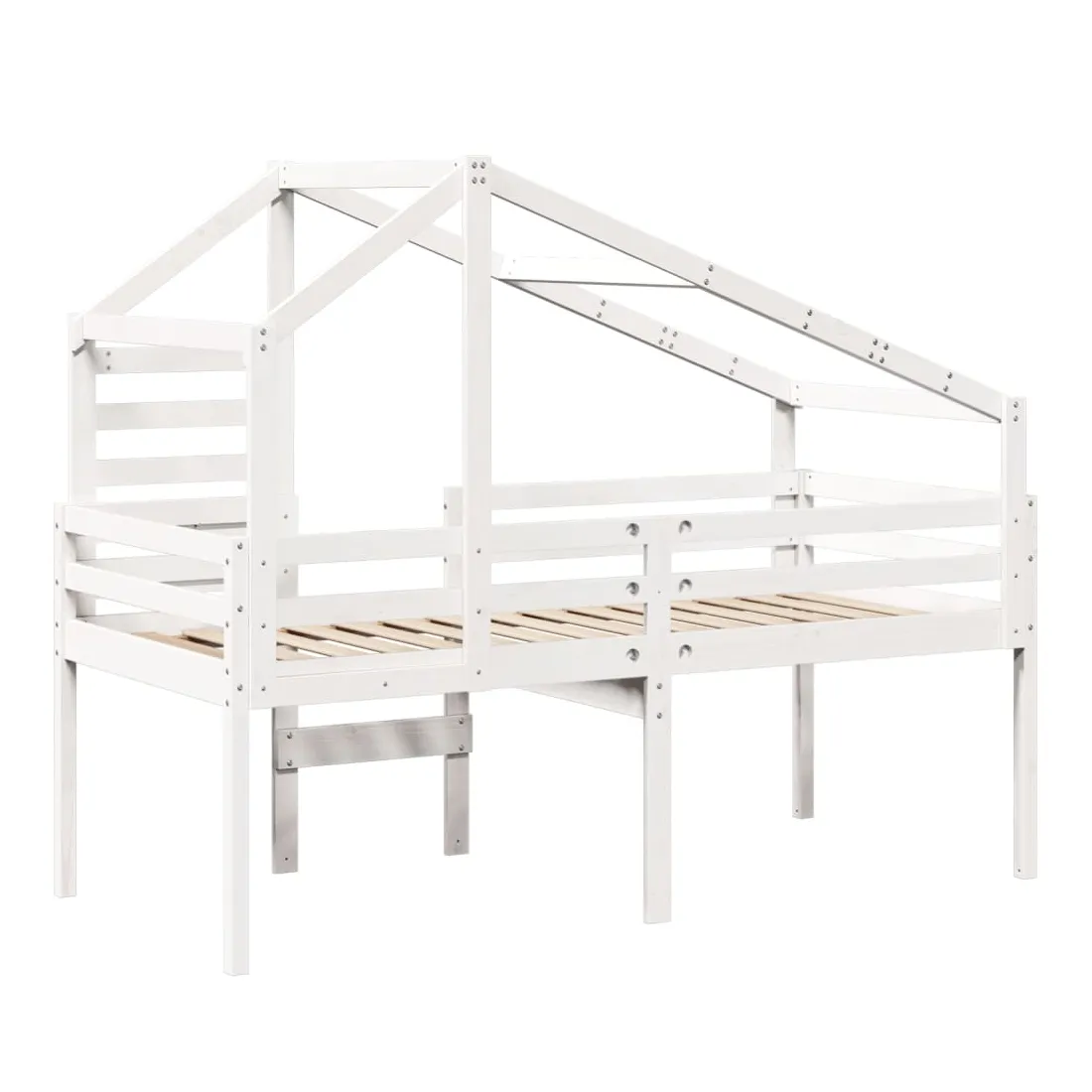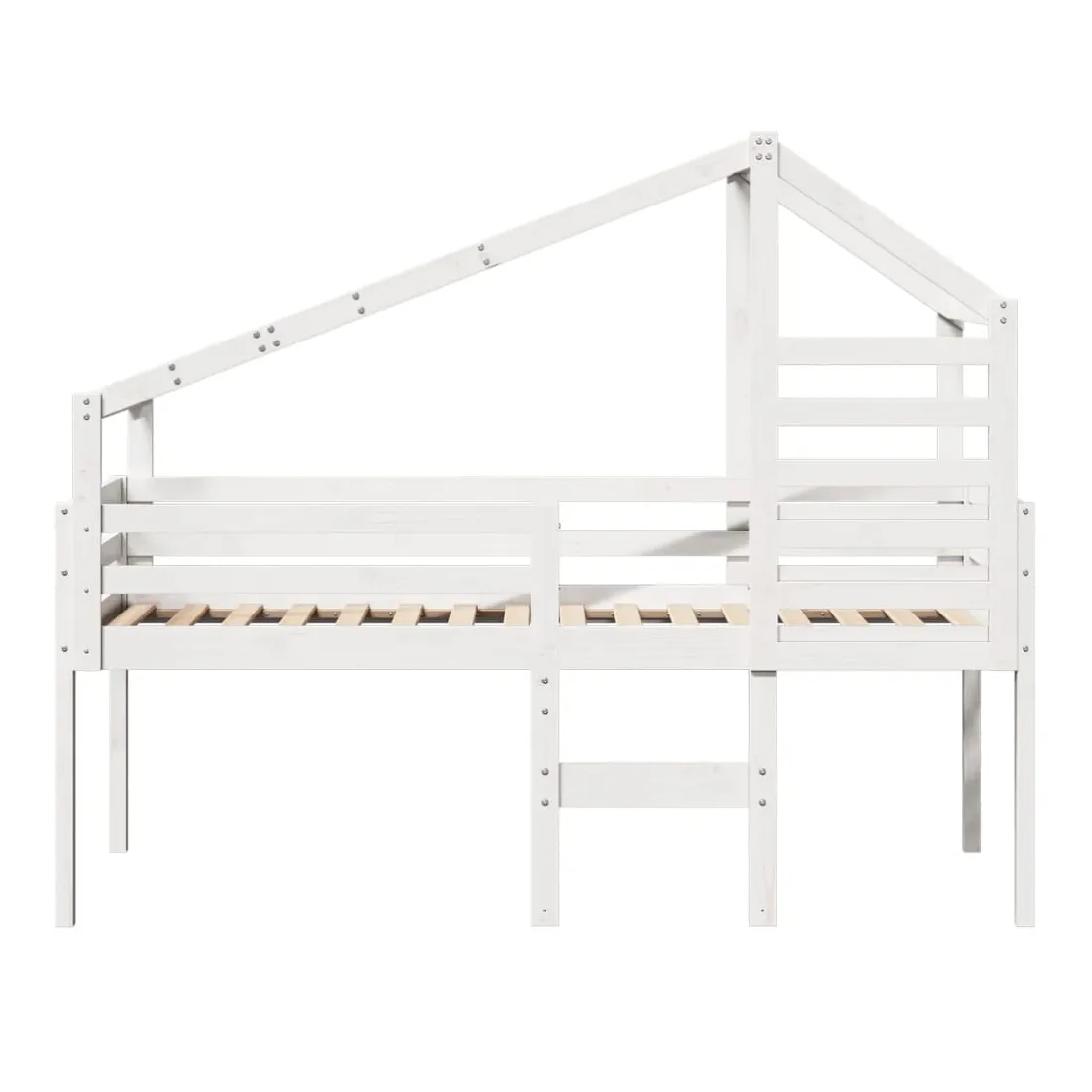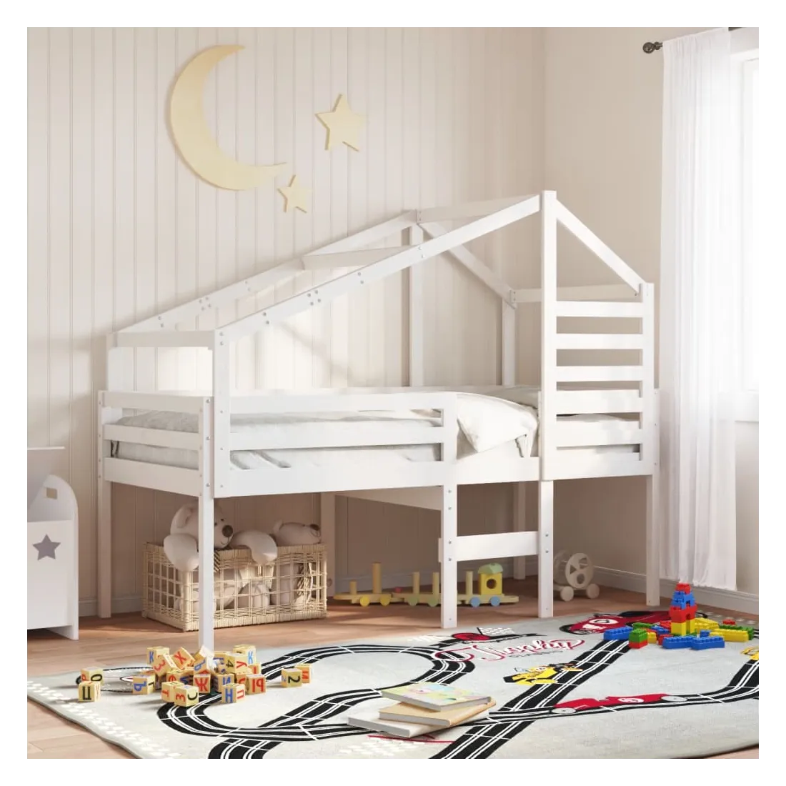 Ce lit haut, dont la polyvalence est au cœur de son design, est une combinaison parfaite de style moderne et élégant et de praticité. Il est idéal pour les petites pièces. Bois de pin massif : le bois de pin massif est un matériau naturel magnifique. Le bois de pin a un grain droit et les nœuds donnent au matériau son aspect caractéristique et rustique.Fonction pratique : le lit surélevé offre un excellent moyen d'utiliser l'espace au sol dans la chambre de votre enfant, vous pouvez le combiner avec un rideau de jeu cool, un matelas de jeu et un panneau d'abri comme un coin de jeu ou utiliser la zone en dessous pour le stockage. Les lattes en contreplaqué offrent un soutien supplémentaire à votre lit. Elles prolongent la durée de vie de votre matelas en absorbant la majeure partie de la tension et du poids du lit.Design sûr : l'échelle intégrée du lit surélevé facilite l'entrée et la sortie du lit, et les garde-corps garantissent la sécurité de vos jeunes pendant qu'ils dorment.Très amusant : en combinant le toit avec le lit de votre enfant, vous pouvez créer une cachette qui permettra à votre enfant de s'amuser à l'heure du coucher. Cette addition innovante non seulement sera un point focal passionnant, mais aussi apportera de la fantaisie et de l'amusement dans la chambre d'enfant.Porte latérale ouverte : le toit est doté d'une porte latérale ouverte qui permet à vos enfants d'entrer et de sortir facilement du lit. Bon à savoir :Un matelas n'est pas inclus avec ce lit. Nous offrons une sélection variée de matelas. Vous pouvez consulter notre boutique pour trouver un matelas assorti.