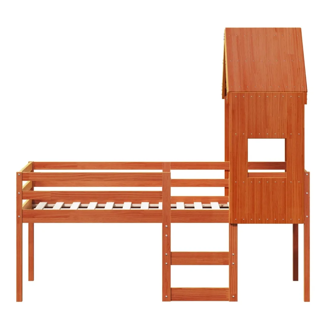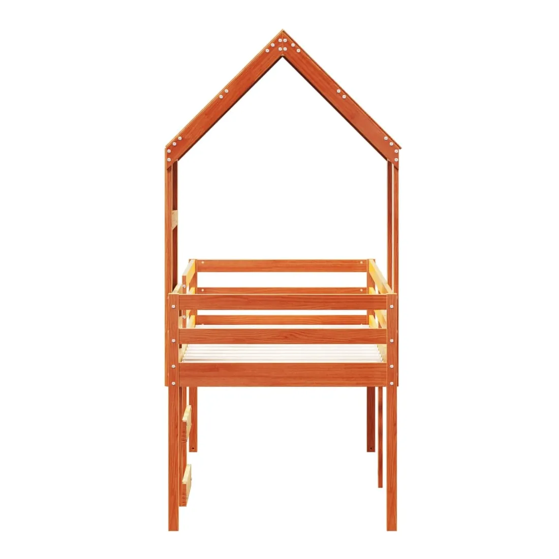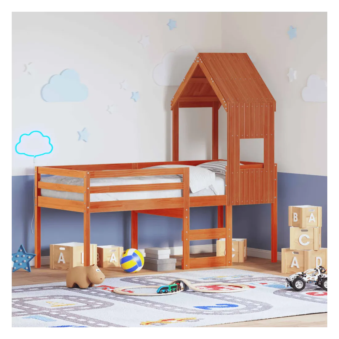 Ce lit haut, dont la polyvalence est au cœur de son design, est une combinaison parfaite de style moderne et élégant et de praticité. Il est idéal pour les petites pièces. Bois de pin massif : le bois de pin massif est un matériau naturel magnifique. Le bois de pin a un grain droit et les nœuds donnent au matériau son aspect caractéristique et rustique.Fonction pratique : le lit surélevé offre un excellent moyen d'utiliser l'espace au sol dans la chambre de votre enfant, vous pouvez le combiner avec un rideau de jeu cool, un matelas de jeu et un panneau d'abri comme un coin de jeu ou utiliser la zone en dessous pour le stockage. Les lattes en contreplaqué offrent un soutien supplémentaire à votre lit. Elles prolongent la durée de vie de votre matelas en absorbant la majeure partie de la tension et du poids du lit.Design sûr : l'échelle intégrée du lit surélevé facilite l'entrée et la sortie du lit, et les garde-corps garantissent la sécurité de vos jeunes pendant qu'ils dorment.Très amusant : en combinant le toit avec le lit de votre enfant, vous pouvez créer une cachette qui permettra à votre enfant de s'amuser à l'heure du coucher. Cette addition innovante non seulement sera un point focal passionnant, mais aussi apportera de la fantaisie et de l'amusement dans la chambre d'enfant.Porte latérale ouverte : le toit est doté d'une porte latérale ouverte qui permet à vos enfants d'entrer et de sortir facilement du lit. Bon à savoir :Un matelas n'est pas inclus avec ce lit. Nous offrons une sélection variée de matelas. Vous pouvez consulter notre boutique pour trouver un matelas assorti.
