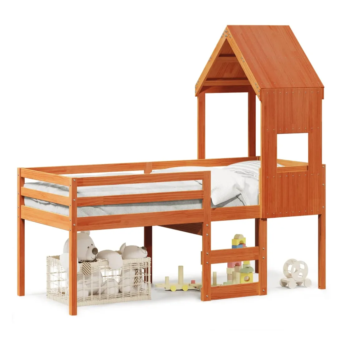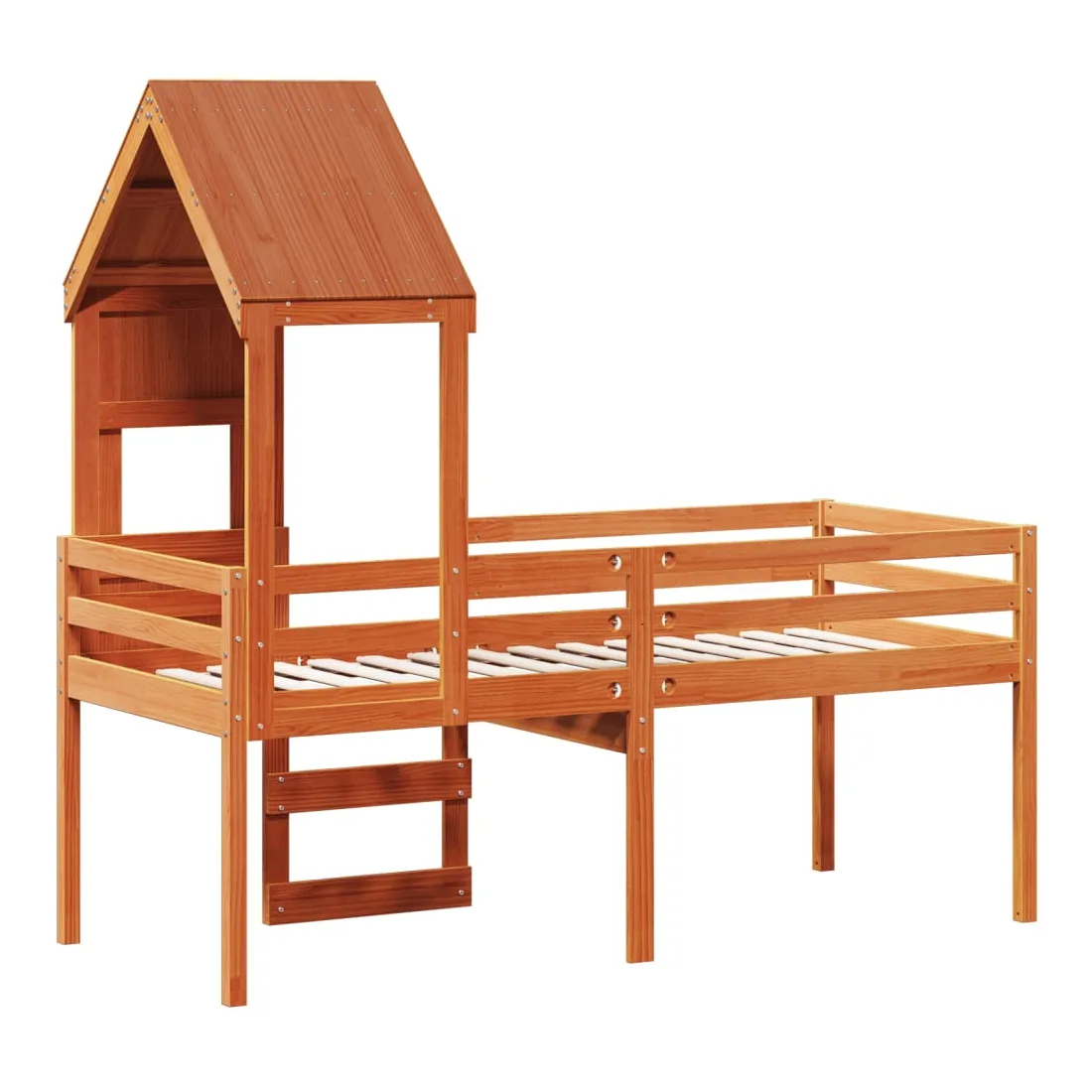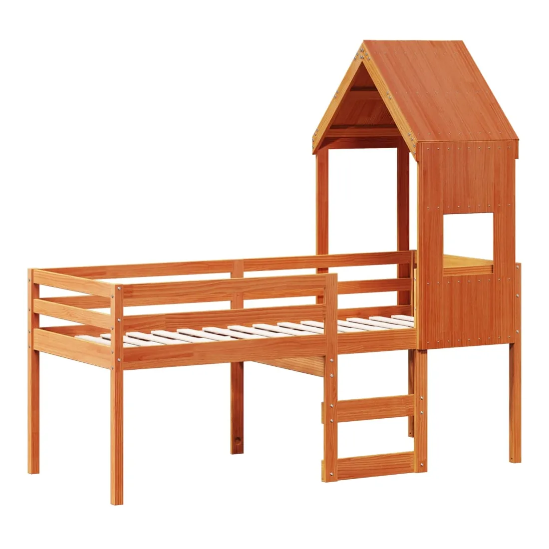 Ce lit haut, dont la polyvalence est au cœur de son design, est une combinaison parfaite de style moderne et élégant et de praticité. Il est idéal pour les petites pièces. Bois de pin massif : le bois de pin massif est un matériau naturel magnifique. Le bois de pin a un grain droit et les nœuds donnent au matériau son aspect caractéristique et rustique.Fonction pratique : le lit surélevé offre un excellent moyen d'utiliser l'espace au sol dans la chambre de votre enfant, vous pouvez le combiner avec un rideau de jeu cool, un matelas de jeu et un panneau d'abri comme un coin de jeu ou utiliser la zone en dessous pour le stockage. Les lattes en contreplaqué offrent un soutien supplémentaire à votre lit. Elles prolongent la durée de vie de votre matelas en absorbant la majeure partie de la tension et du poids du lit.Design sûr : l'échelle intégrée du lit surélevé facilite l'entrée et la sortie du lit, et les garde-corps garantissent la sécurité de vos jeunes pendant qu'ils dorment.Très amusant : en combinant le toit avec le lit de votre enfant, vous pouvez créer une cachette qui permettra à votre enfant de s'amuser à l'heure du coucher. Cette addition innovante non seulement sera un point focal passionnant, mais aussi apportera de la fantaisie et de l'amusement dans la chambre d'enfant.Porte latérale ouverte : le toit est doté d'une porte latérale ouverte qui permet à vos enfants d'entrer et de sortir facilement du lit. Bon à savoir :Un matelas n'est pas inclus avec ce lit. Nous offrons une sélection variée de matelas. Vous pouvez consulter notre boutique pour trouver un matelas assorti.