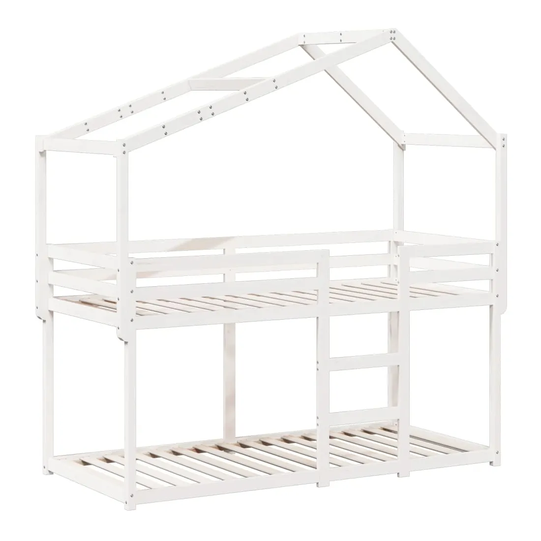 Ce lit superposé pour enfants avec toit est élégant et fonctionnel, ce qui en fait un ajout parfait à toute pièce avec un espace limité. Bois de pin massif : le bois de pin massif est un matériau naturel magnifique. Le bois de pin a un grain droit et les nœuds donnent au matériau son aspect caractéristique et rustique.Design sûr : le lit surélevé est conçu dans un souci de sécurité. Il comprend des garde-corps qui empêchent l'utilisateur de rouler pendant son sommeil.Lattes de contreplaqué : les lattes de contreplaqué assurent une bonne répartition du poids, garantissant que le matelas reste en place à chaque torsion de votre corps pendant le sommeil.Très amusant : en combinant le toit avec le lit de votre enfant, vous pouvez créer une cachette qui permettra à votre enfant de s'amuser à l'heure du coucher. Cette addition innovante non seulement sera un point focal passionnant, mais aussi apportera de la fantaisie et de l'amusement dans la chambre d'enfant.Convient aux espaces limités : le cadre de lit est un excellent choix pour toute pièce dont l'espace est limité, il fournit deux lits individuels avec un design compact.Porte latérale ouverte : le toit est doté d'une porte latérale ouverte qui permet à vos enfants d'entrer et de sortir facilement du lit. Bon à savoir :Un matelas n'est pas inclus avec ce lit. Nous offrons une sélection variée de matelas. Vous pouvez consulter notre boutique pour trouver un matelas assorti.