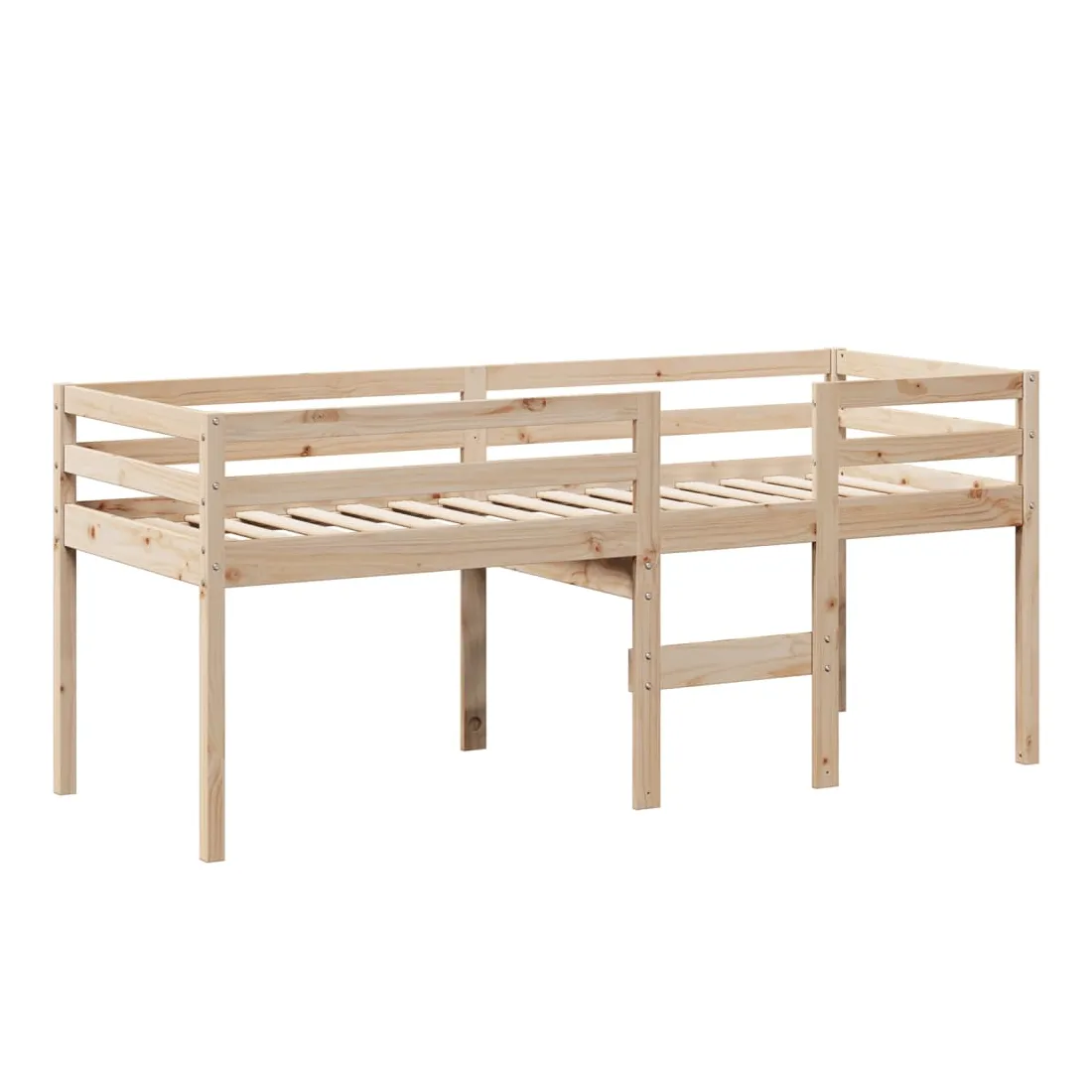 Ce lit haut, dont la polyvalence est au cœur de son design, est une combinaison parfaite de style moderne et élégant et de praticité. Il est idéal pour les petites pièces. Bois de pin massif : le bois de pin massif est un matériau naturel magnifique. Le bois de pin a un grain droit et les nœuds donnent au matériau son aspect caractéristique et rustique.Fonction pratique : le lit surélevé offre un excellent moyen d'utiliser l'espace au sol dans la chambre de votre enfant, vous pouvez le combiner avec un rideau de jeu cool, un matelas de jeu et un panneau d'abri comme un coin de jeu ou utiliser la zone en dessous pour le stockage. Les lattes en contreplaqué offrent un soutien supplémentaire à votre lit. Elles prolongent la durée de vie de votre matelas en absorbant la majeure partie de la tension et du poids du lit.Design sûr : l'échelle intégrée du lit surélevé facilite l'entrée et la sortie du lit, et les garde-corps garantissent la sécurité de vos jeunes pendant qu'ils dorment.Très amusant : en combinant le toit avec le lit de votre enfant, vous pouvez créer une cachette qui permettra à votre enfant de s'amuser à l'heure du coucher. Cette addition innovante non seulement sera un point focal passionnant, mais aussi apportera de la fantaisie et de l'amusement dans la chambre d'enfant.Porte latérale ouverte : le toit est doté d'une porte latérale ouverte qui permet à vos enfants d'entrer et de sortir facilement du lit. Bon à savoir :Un matelas n'est pas inclus avec ce lit. Nous offrons une sélection variée de matelas. Vous pouvez consulter notre boutique pour trouver un matelas assorti.
