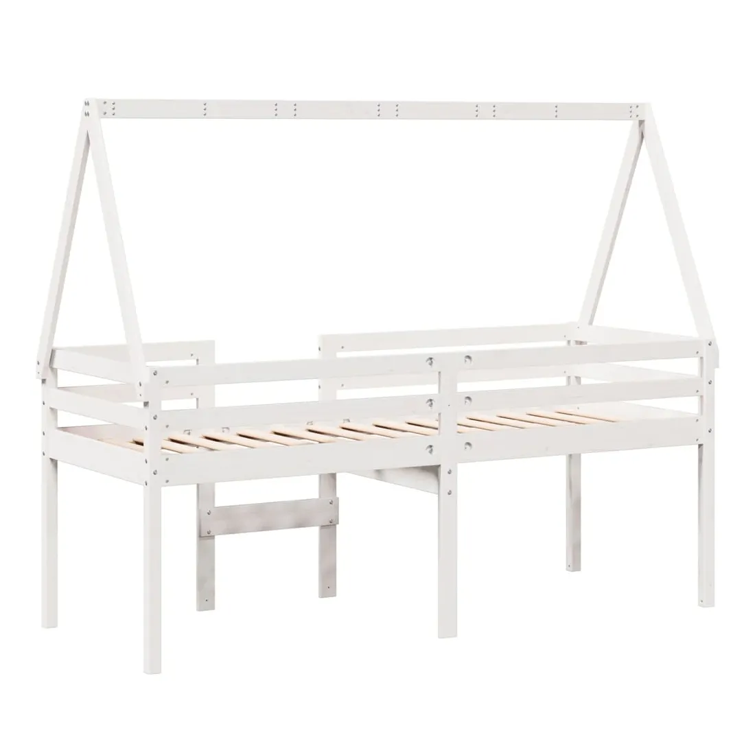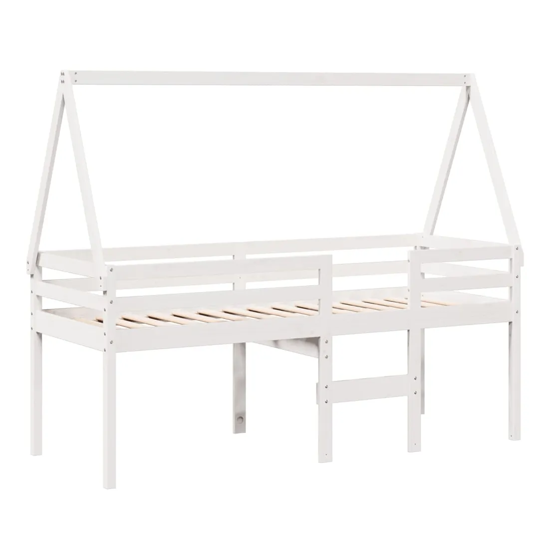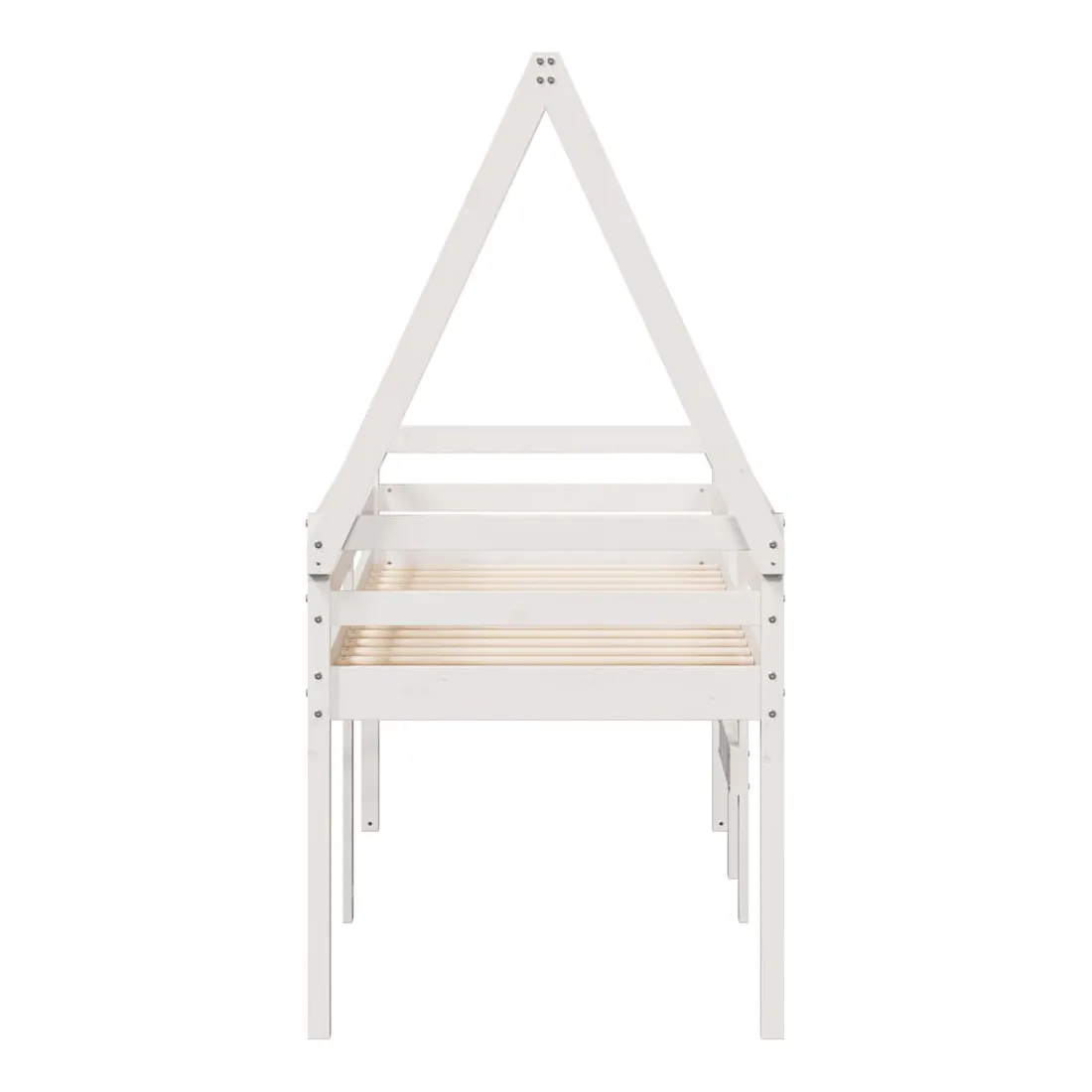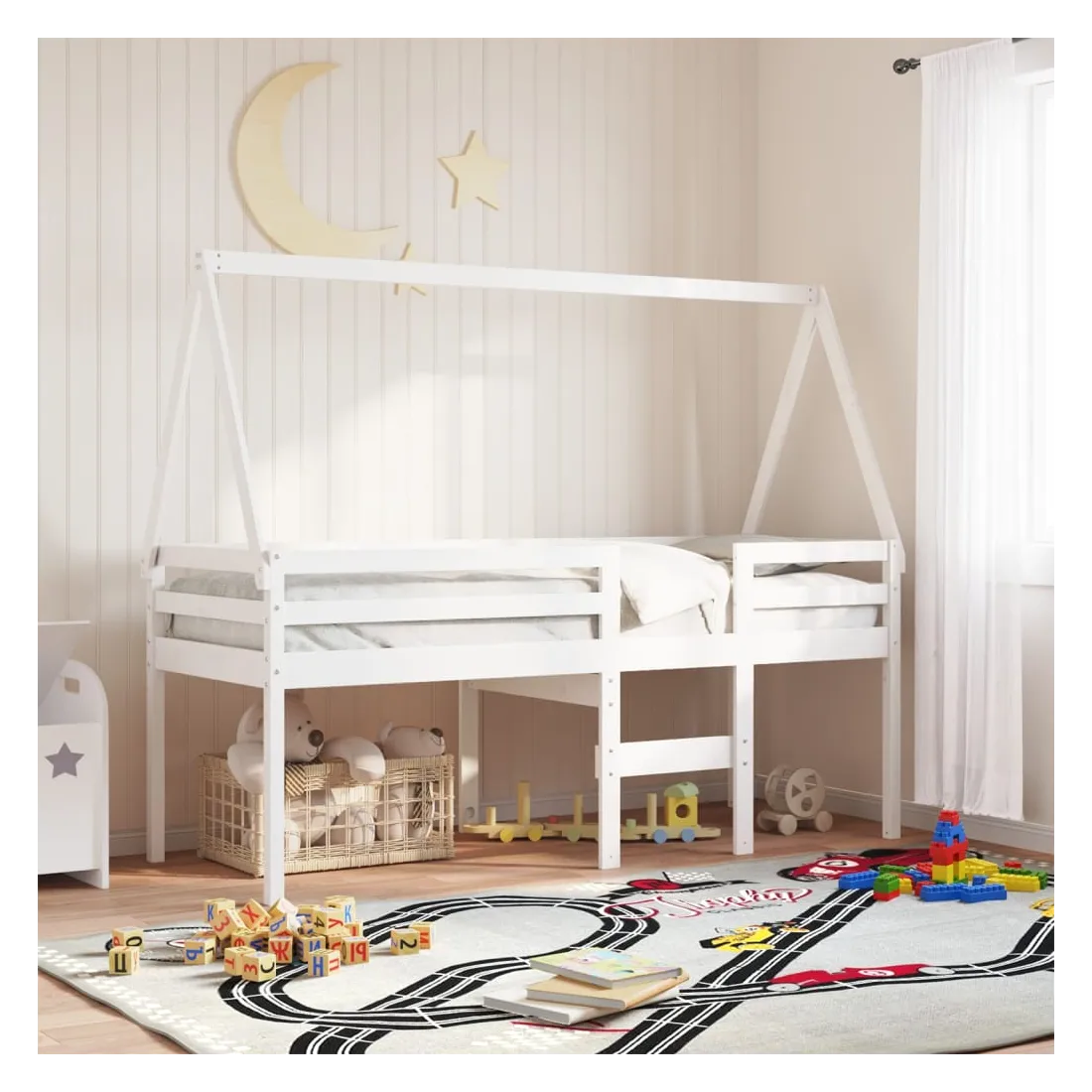 Ce lit haut, dont la polyvalence est au cœur de son design, est une combinaison parfaite de style moderne et élégant et de praticité. Il est idéal pour les petites pièces. Bois de pin massif : le bois de pin massif est un matériau naturel magnifique. Le bois de pin a un grain droit et les nœuds donnent au matériau son aspect caractéristique et rustique.Fonction pratique : le lit surélevé offre un excellent moyen d'utiliser l'espace au sol dans la chambre de votre enfant, vous pouvez le combiner avec un rideau de jeu cool, un matelas de jeu et un panneau d'abri comme un coin de jeu ou utiliser la zone en dessous pour le stockage. Les lattes en contreplaqué offrent un soutien supplémentaire à votre lit. Elles prolongent la durée de vie de votre matelas en absorbant la majeure partie de la tension et du poids du lit.Design sûr : l'échelle intégrée du lit surélevé facilite l'entrée et la sortie du lit, et les garde-corps garantissent la sécurité de vos jeunes pendant qu'ils dorment.Très amusant : en combinant le toit avec le lit de votre enfant, vous pouvez créer une cachette qui permettra à votre enfant de s'amuser à l'heure du coucher. Cette addition innovante non seulement sera un point focal passionnant, mais aussi apportera de la fantaisie et de l'amusement dans la chambre d'enfant.Porte latérale ouverte : le toit est doté d'une porte latérale ouverte qui permet à vos enfants d'entrer et de sortir facilement du lit. Bon à savoir :Un matelas n'est pas inclus avec ce lit. Nous offrons une sélection variée de matelas. Vous pouvez consulter notre boutique pour trouver un matelas assorti.