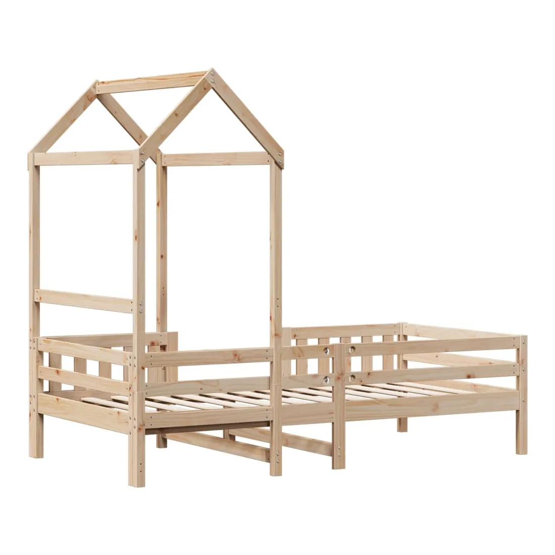 Ajoutez une touche moderne à votre chambre à coucher avec ce cadre de lit ! Il apportera une touche pratique et décorative à votre espace de vie. Bois de pin massif : le bois de pin massif est un matériau naturel magnifique. Le bois de pin a un grain droit et les nœuds donnent au matériau son aspect caractéristique et rustique.Lattes de contreplaqué : les lattes de contreplaqué assurent une bonne répartition du poids, garantissant que le matelas reste en place à chaque torsion de votre corps pendant le sommeil.Très amusant : en combinant le toit avec le lit de votre enfant, vous pouvez créer une cachette qui permettra à votre enfant de s'amuser à l'heure du coucher. Cette addition innovante non seulement sera un point focal passionnant, mais aussi apportera de la fantaisie et de l'amusement dans la chambre d'enfant.Porte latérale ouverte : le toit est doté d'une porte latérale ouverte qui permet à vos enfants d'entrer et de sortir facilement du lit.Design moderne : ajoutez un style moderne à votre décor intérieur existant ! Le design moderne présente des lignes épurées, des looks minimalistes et de la lumière naturelle dans le cadre du style de design d'intérieur. Bon à savoir :Un matelas n'est pas inclus avec ce lit. Nous offrons une sélection variée de matelas. Vous pouvez consulter notre boutique pour trouver un matelas assorti.