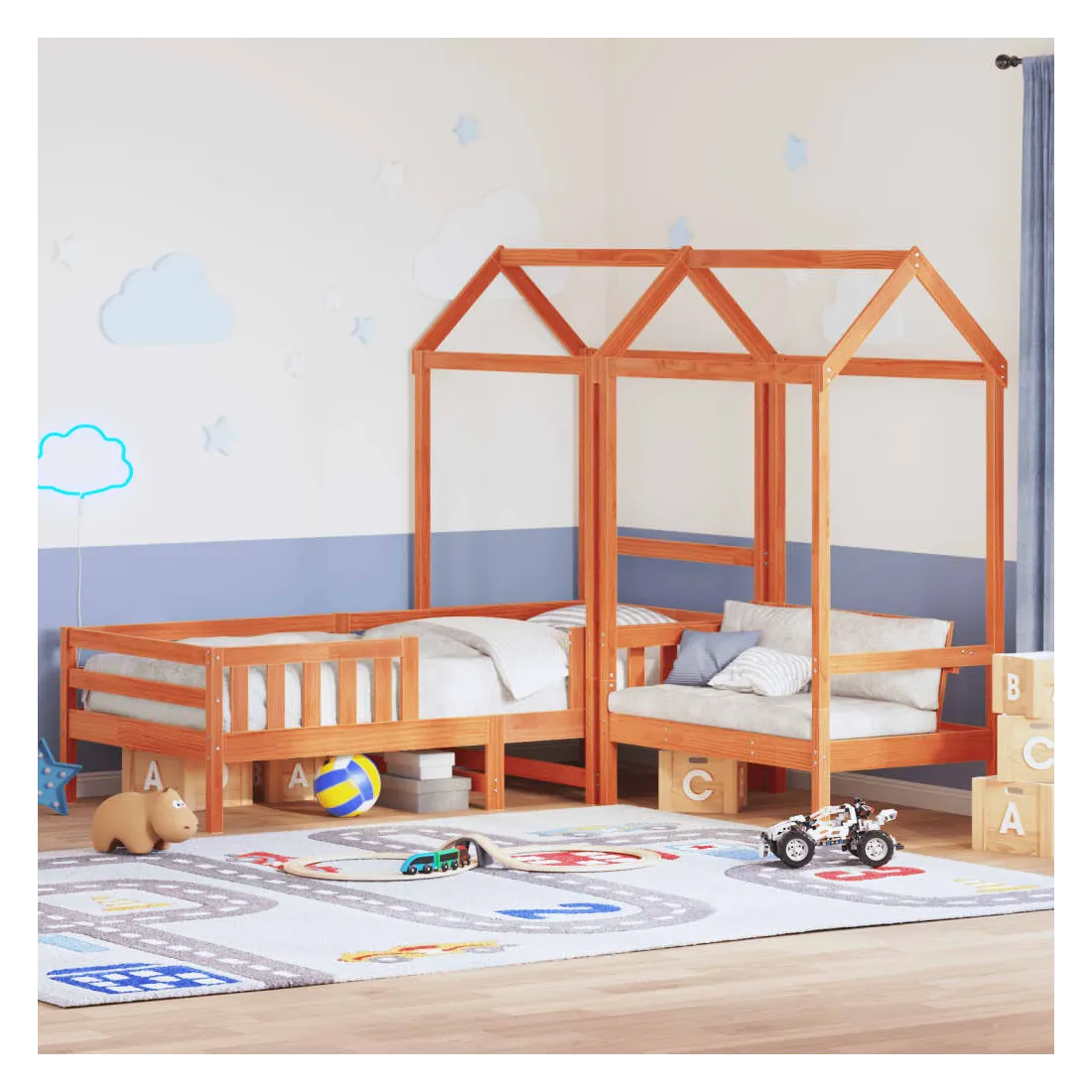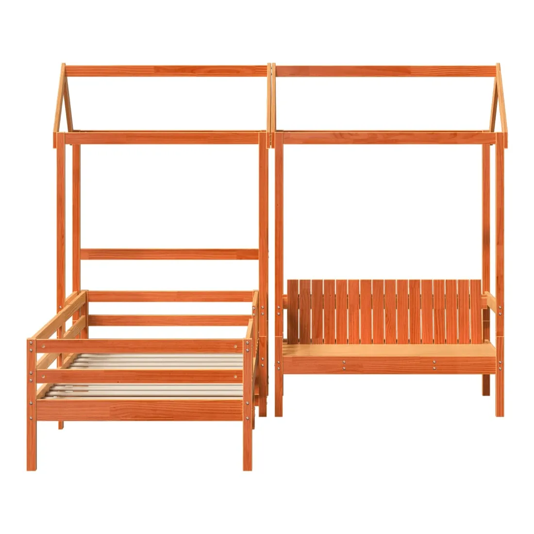 Ajoutez une touche moderne à votre chambre à coucher avec cet ensemble de lit et de banc ! Il apportera une touche pratique et décorative à votre espace de vie. Bois de pin massif : le bois de pin massif est un matériau naturel magnifique. Le bois de pin a un grain droit et les nœuds donnent au matériau son aspect caractéristique et rustique.Lattes de contreplaqué : les lattes de contreplaqué assurent une bonne répartition du poids, garantissant que le matelas reste en place à chaque torsion de votre corps pendant le sommeil.Dossier pratique : le banc est conçu avec un dossier afin que vous puissiez détendre votre corps selon votre confort.Très amusant : en combinant le toit avec le lit de votre enfant, vous pouvez créer une cachette qui permettra à votre enfant de s'amuser à l'heure du coucher. Cette addition innovante non seulement sera un point focal passionnant, mais aussi apportera de la fantaisie et de l'amusement dans la chambre d'enfant.Design moderne : ajoutez un style moderne à votre décor intérieur existant ! Le design moderne présente des lignes épurées, des looks minimalistes et de la lumière naturelle dans le cadre du style de design d'intérieur. Bon à savoir :Un matelas n'est pas inclus avec ce lit. Nous offrons une sélection variée de matelas. Vous pouvez consulter notre boutique pour trouver un matelas assorti.