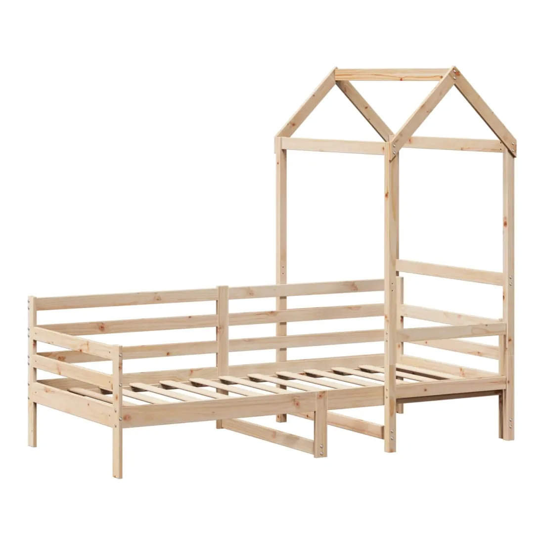 vidaXLCe lit de jour polyvalent en bois peut être utilisé comme un lit dans la chambre à coucher et est également idéal comme un canapé dans le salon. Il s'adapte parfaitement à vos différents besoins, vous offrant beaucoup d'espace pour dormir et vous reposer. Bois de pin massif : le bois de pin massif est un matériau naturel magnifique. Le bois de pin a un grain droit et les nœuds donnent au matériau son aspect caractéristique et rustique.Barres de lit sur 3 côtés : ce lit d'appoint présente un design unique sur le côté du lit, ce qui offre un sentiment de sécurité et ajoute une touche de style sophistiqué à votre intérieur.Design à lattes : le sommier à lattes en bois permet une meilleure circulation de l'air pour garder le matelas frais plus longtemps, améliorant la capacité de poids du lit et assurant la stabilité.Espace de rangement supplémentaire : profitez de l'espace sous le canapé pour ranger divers objets. Parfait pour ranger des boîtes pour organiser des vêtements, des jouets ou des couettes.Très amusant : en combinant le toit avec votre canapé-lit, vous pouvez créer une cachette qui permettra à votre enfant de s'amuser à l'heure du coucher. Cet ajout innovant sera non seulement un point focal passionnant, mais il apportera également de l'émerveillement et de l'excitation dans la chambre.Porte latérale ouverte : le toit est doté d'une porte latérale ouverte qui permet à vos enfants d'entrer et de sortir facilement du lit. Bon à savoir :Un matelas n'est pas inclus avec ce lit. Nous offrons une sélection variée de matelas. Vous pouvez consulter notre boutique pour trouver un matelas assorti.