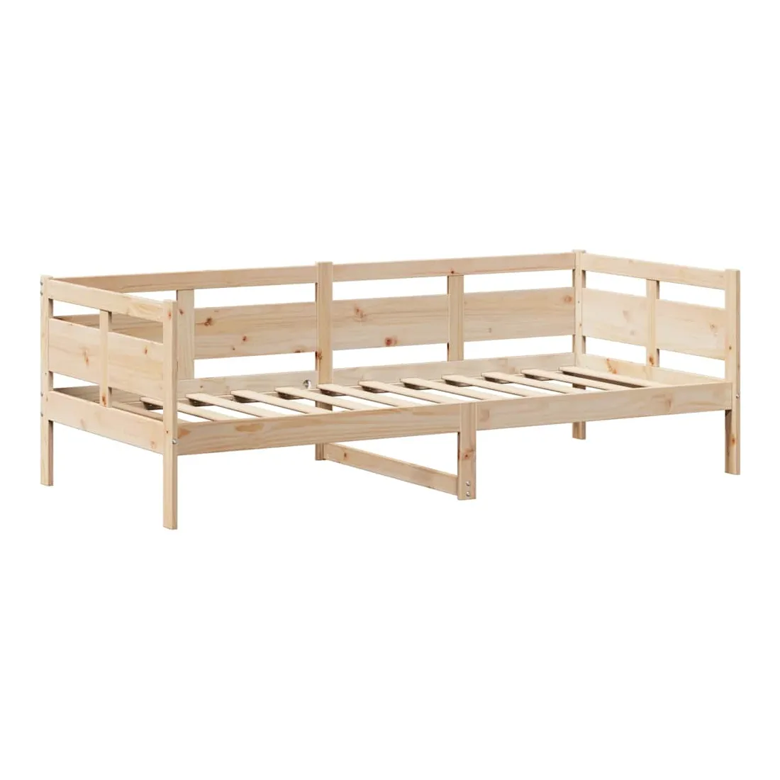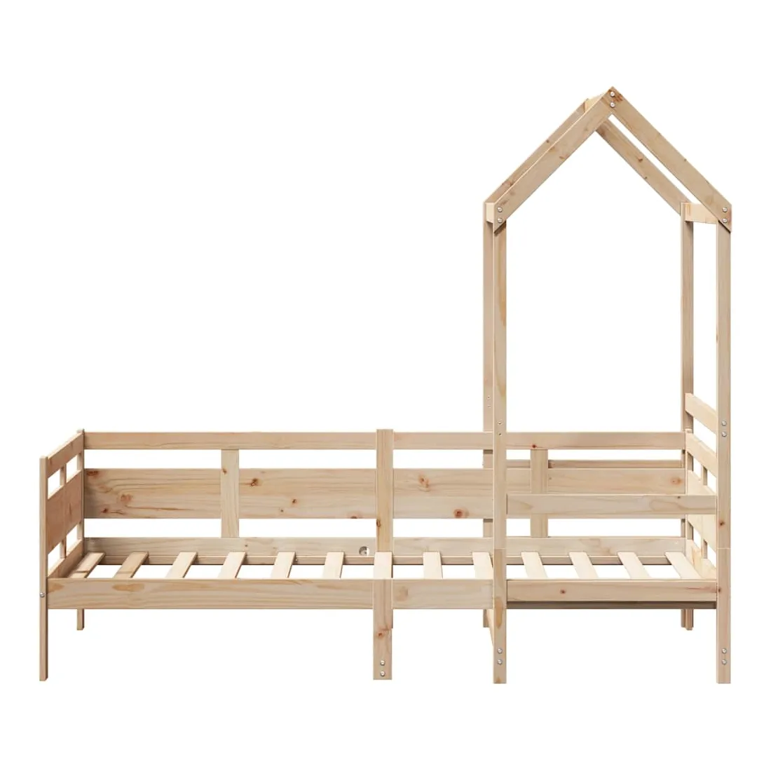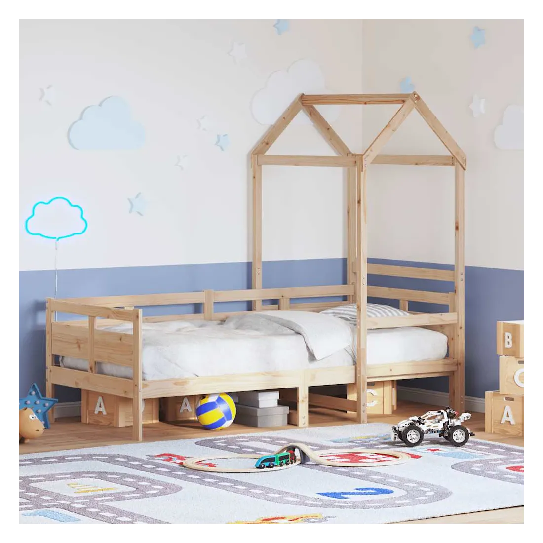 vidaXLCe lit de jour polyvalent en bois peut être utilisé comme un lit dans la chambre à coucher et est également idéal comme un canapé dans le salon. Il s'adapte parfaitement à vos différents besoins, vous offrant beaucoup d'espace pour dormir et vous reposer. Bois de pin massif : le bois de pin massif est un matériau naturel magnifique. Le bois de pin a un grain droit et les nœuds donnent au matériau son aspect caractéristique et rustique.Barres de lit sur 3 côtés : ce lit d'appoint présente un design unique sur le côté du lit, ce qui offre un sentiment de sécurité et ajoute une touche de style sophistiqué à votre intérieur.Design à lattes : le sommier à lattes en bois permet une meilleure circulation de l'air pour garder le matelas frais plus longtemps, améliorant la capacité de poids du lit et assurant la stabilité.Espace de rangement supplémentaire : profitez de l'espace sous le canapé pour ranger divers objets. Parfait pour ranger des boîtes pour organiser des vêtements, des jouets ou des couettes.Très amusant : en combinant le toit avec votre canapé-lit, vous pouvez créer une cachette qui permettra à votre enfant de s'amuser à l'heure du coucher. Cette addition innovante non seulement sera un point focal passionnant, mais aussi apportera de la fantaisie et de l'amusement dans la chambre.Porte latérale ouverte : le toit est doté d'une porte latérale ouverte qui permet à vos enfants d'entrer et de sortir facilement du lit. Bon à savoir :Un matelas n'est pas inclus avec ce lit. Nous offrons une sélection variée de matelas. Vous pouvez consulter notre boutique pour trouver un matelas assorti.