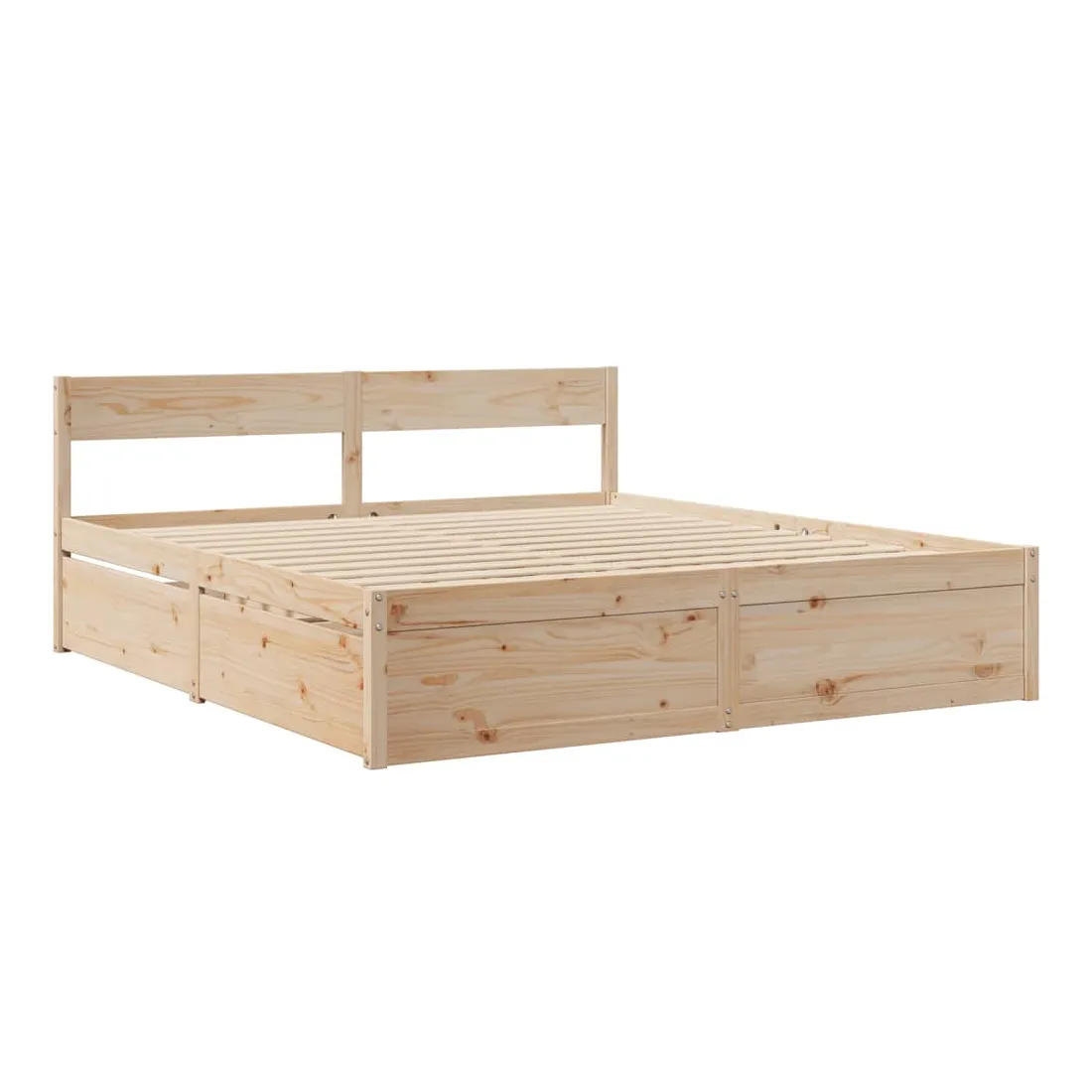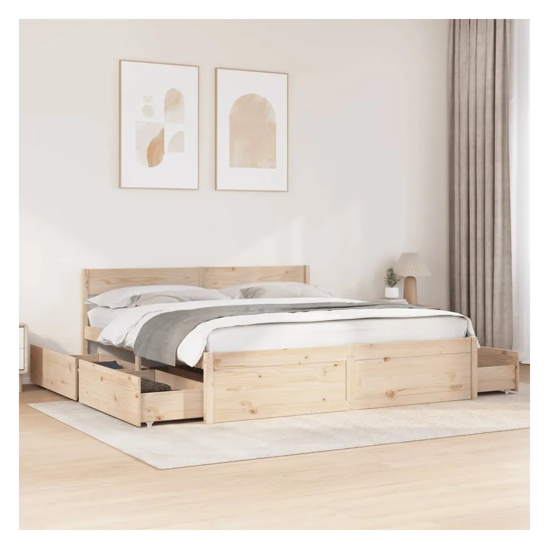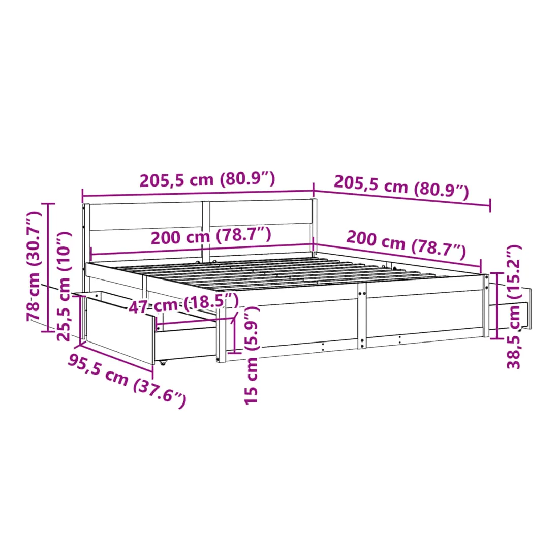 Ajoutez une touche moderne à votre chambre à coucher avec ce cadre de lit avec tiroirs ! Il apportera une touche pratique et décorative à votre espace de vie. Cadre stable et durable : le bois de pin massif est connu pour sa résistance et sa durabilité. Ses grains droits et ses nœuds distinctifs contribuent à son charme rustique.Lattes de contreplaqué : les lattes de contreplaqué assurent une bonne répartition du poids, garantissant que le matelas reste en place à chaque torsion de votre corps pendant le sommeil.Fonction de rangement : les tiroirs de lit inclus offrent suffisamment d'espace de rangement pour ranger vos articles essentiels, gardant votre pièce propre et bien rangée.Tête de lit polyvalente : ce cadre de lit est équipé d'une tête de lit qui offre un excellent soutien dorsal lorsque vous vous asseyez dans le lit pour lire ou regarder la télévision, tout en servant d'élément décoratif. Bon à savoir :Un matelas n'est pas inclus avec ce lit. Nous offrons une sélection variée de matelas. Vous pouvez consulter notre boutique pour trouver un matelas assorti.