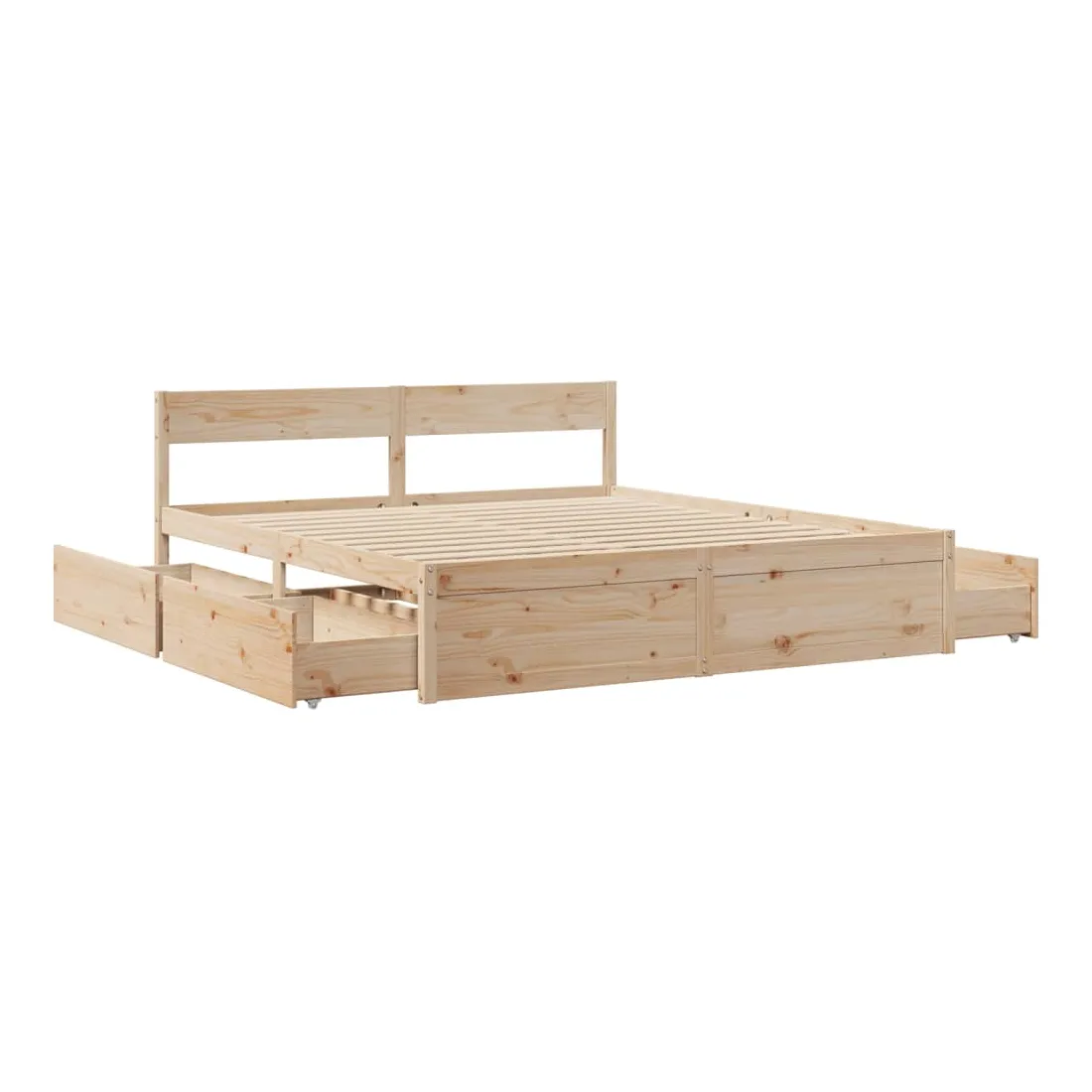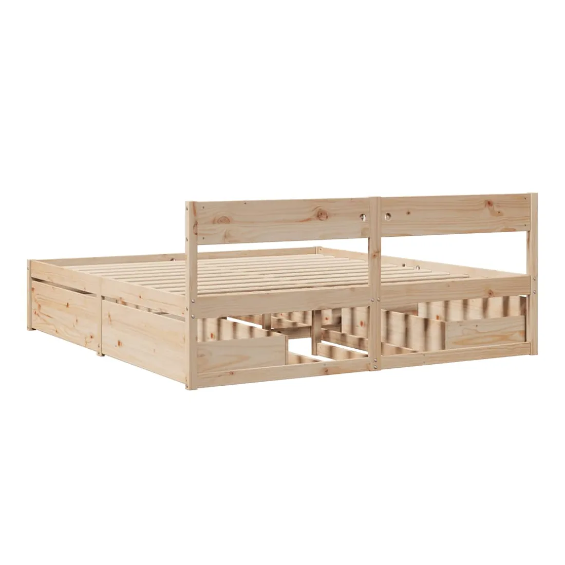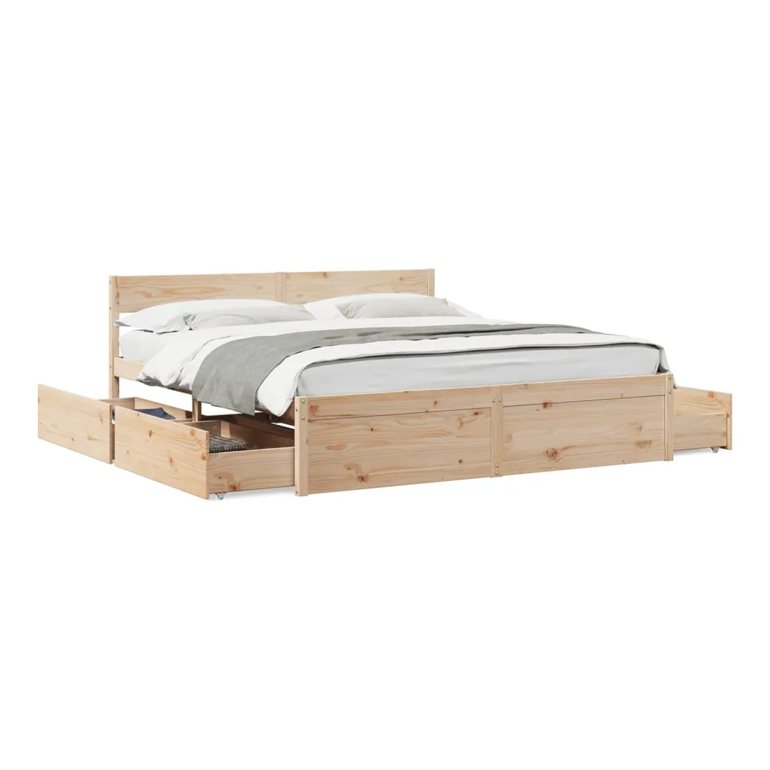 Ajoutez une touche moderne à votre chambre à coucher avec ce cadre de lit avec tiroirs ! Il apportera une touche pratique et décorative à votre espace de vie. Cadre stable et durable : le bois de pin massif est connu pour sa résistance et sa durabilité. Ses grains droits et ses nœuds distinctifs contribuent à son charme rustique.Lattes de contreplaqué : les lattes de contreplaqué assurent une bonne répartition du poids, garantissant que le matelas reste en place à chaque torsion de votre corps pendant le sommeil.Fonction de rangement : les tiroirs de lit inclus offrent suffisamment d'espace de rangement pour ranger vos articles essentiels, gardant votre pièce propre et bien rangée.Tête de lit polyvalente : ce cadre de lit est équipé d'une tête de lit qui offre un excellent soutien dorsal lorsque vous vous asseyez dans le lit pour lire ou regarder la télévision, tout en servant d'élément décoratif. Bon à savoir :Un matelas n'est pas inclus avec ce lit. Nous offrons une sélection variée de matelas. Vous pouvez consulter notre boutique pour trouver un matelas assorti.