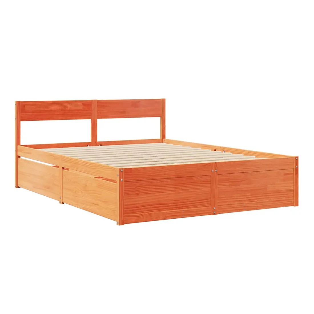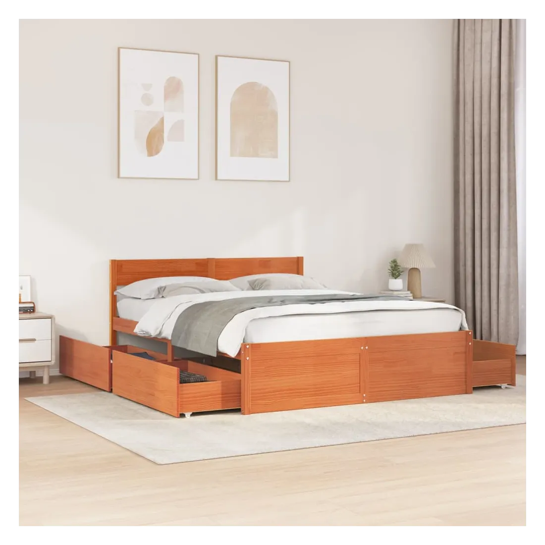 Ajoutez une touche moderne à votre chambre à coucher avec ce cadre de lit avec tiroirs ! Il apportera une touche pratique et décorative à votre espace de vie. Cadre stable et durable : le bois de pin massif est connu pour sa résistance et sa durabilité. Ses grains droits et ses nœuds distinctifs contribuent à son charme rustique.Lattes de contreplaqué : les lattes de contreplaqué assurent une bonne répartition du poids, garantissant que le matelas reste en place à chaque torsion de votre corps pendant le sommeil.Fonction de rangement : les tiroirs de lit inclus offrent suffisamment d'espace de rangement pour ranger vos articles essentiels, gardant votre pièce propre et bien rangée.Tête de lit polyvalente : ce cadre de lit est équipé d'une tête de lit qui offre un excellent soutien dorsal lorsque vous vous asseyez dans le lit pour lire ou regarder la télévision, tout en servant d'élément décoratif. Bon à savoir :Un matelas n'est pas inclus avec ce lit. Nous offrons une sélection variée de matelas. Vous pouvez consulter notre boutique pour trouver un matelas assorti.