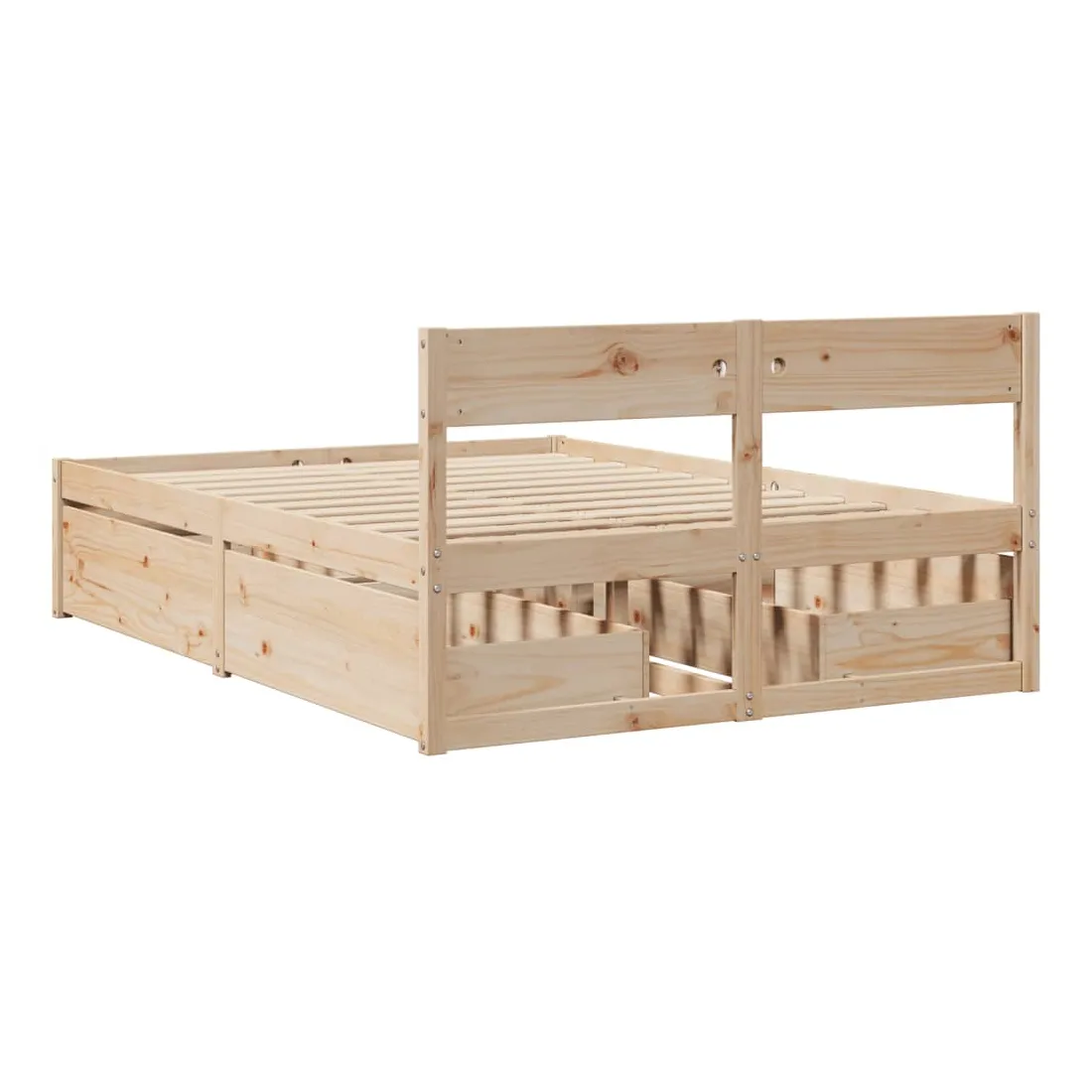 Ajoutez une touche moderne à votre chambre à coucher avec ce cadre de lit avec tiroirs ! Il apportera une touche pratique et décorative à votre espace de vie. Cadre stable et durable : le bois de pin massif est connu pour sa résistance et sa durabilité. Ses grains droits et ses nœuds distinctifs contribuent à son charme rustique.Lattes de contreplaqué : les lattes de contreplaqué assurent une bonne répartition du poids, garantissant que le matelas reste en place à chaque torsion de votre corps pendant le sommeil.Fonction de rangement : les tiroirs de lit inclus offrent suffisamment d'espace de rangement pour ranger vos articles essentiels, gardant votre pièce propre et bien rangée.Tête de lit polyvalente : ce cadre de lit est équipé d'une tête de lit qui offre un excellent soutien dorsal lorsque vous vous asseyez dans le lit pour lire ou regarder la télévision, tout en servant d'élément décoratif. Bon à savoir :Un matelas n'est pas inclus avec ce lit. Nous offrons une sélection variée de matelas. Vous pouvez consulter notre boutique pour trouver un matelas assorti.