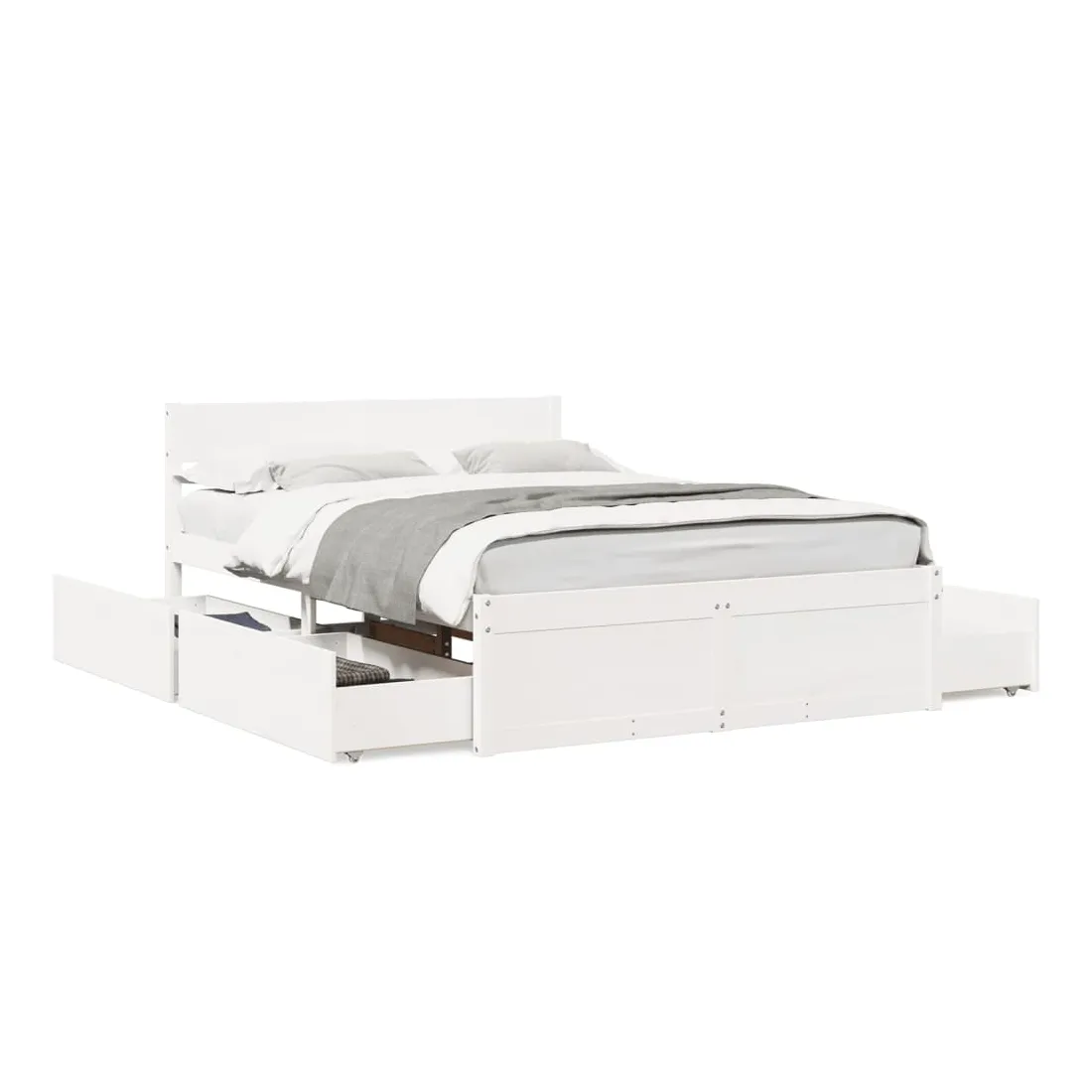 Ajoutez une touche moderne à votre chambre à coucher avec ce cadre de lit avec tiroirs ! Il apportera une touche pratique et décorative à votre espace de vie. Cadre stable et durable : le bois de pin massif est connu pour sa résistance et sa durabilité. Ses grains droits et ses nœuds distinctifs contribuent à son charme rustique.Lattes de contreplaqué : les lattes de contreplaqué assurent une bonne répartition du poids, garantissant que le matelas reste en place à chaque torsion de votre corps pendant le sommeil.Fonction de rangement : les tiroirs de lit inclus offrent suffisamment d'espace de rangement pour ranger vos articles essentiels, gardant votre pièce propre et bien rangée.Tête de lit polyvalente : ce cadre de lit est équipé d'une tête de lit qui offre un excellent soutien dorsal lorsque vous vous asseyez dans le lit pour lire ou regarder la télévision, tout en servant d'élément décoratif. Bon à savoir :Un matelas n'est pas inclus avec ce lit. Nous offrons une sélection variée de matelas. Vous pouvez consulter notre boutique pour trouver un matelas assorti.