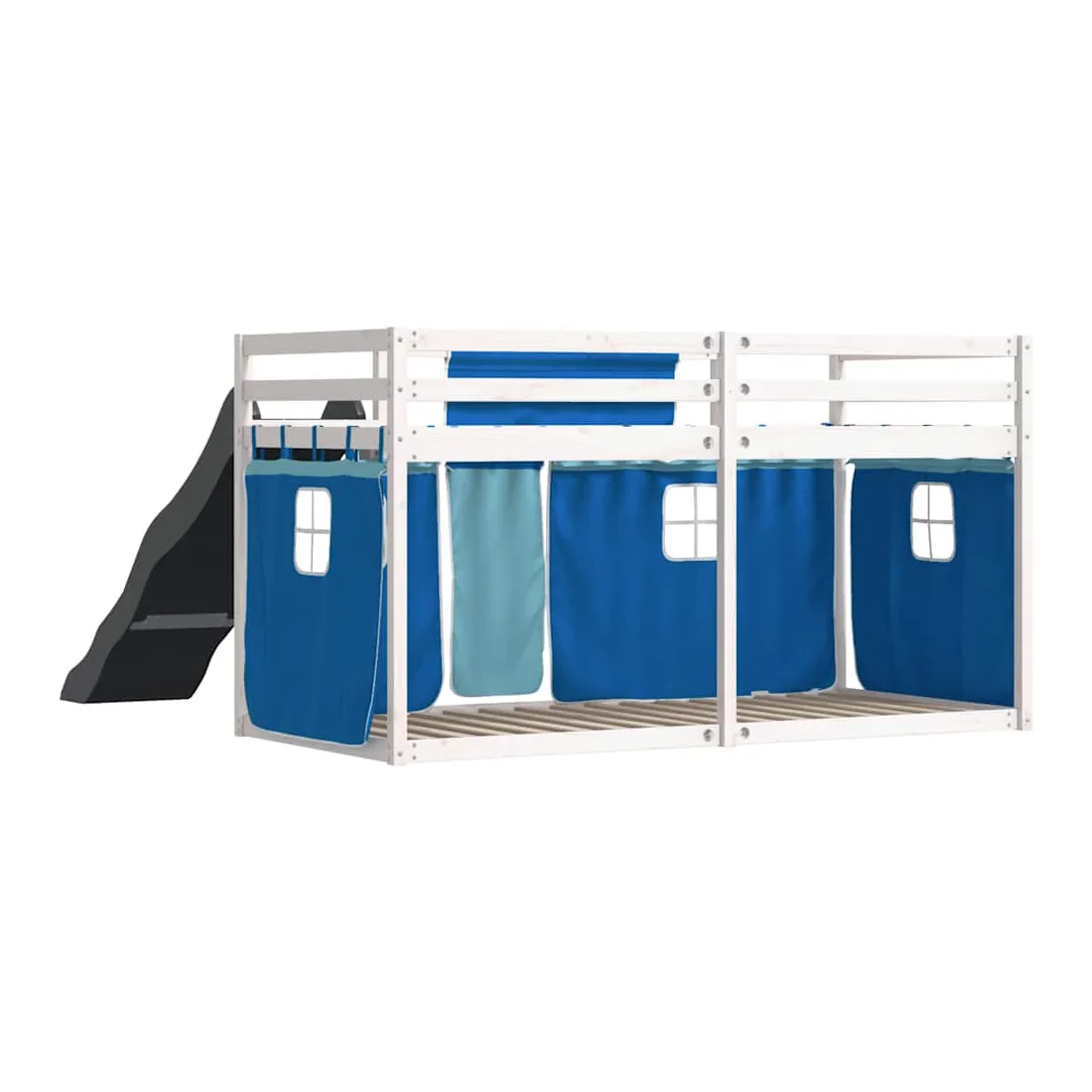 Ce lit superposé en bois est élégant et fonctionnel, ce qui en fait un supplément parfait à toute pièce dont l'espace est limité. Bois de pin massif : ce lit superposé est fabriqué en bois de pin massif pour plus de stabilité et de durabilité. Le bois de pin a un grain droit et les nœuds donnent au matériau son aspect rustique caractéristique.Très amusant : vous pouvez combiner les rideaux avec le lit superposé bas pour créer la base secrète de votre enfant, ce qui permet de s’amuser à l’heure du coucher et d’ajouter un point d'intérêt à la chambre à coucher !Barrières de sécurité : le lit supérieur est équipé de garde-corps de sécurité sur les 4 côtés, afin que votre enfant puisse dormir sans craindre de tomber.Échelle et toboggan pratiques : ce lit superposé est doté d'un toboggan amusant qui apporte de la joie et transforme leur chambre en une aire de jeux intérieure. La combinaison d'une échelle d'escalade et d'un toboggan rend l'heure du coucher plus vivante et plus intéressante pour les enfants.Lattes robustes : les lattes de contreplaqué assurent une bonne répartition du poids, garantissant que le matelas reste en place à chaque torsion de votre corps pendant le sommeil. Bon à savoir :Un matelas n'est pas inclus avec ce lit. Nous offrons une sélection variée de matelas. Vous pouvez consulter notre boutique pour trouver un matelas assorti. Attention :Pour éviter qu'il ne bascule, ce produit doit être utilisé avec le dispositif de fixation murale fourni.