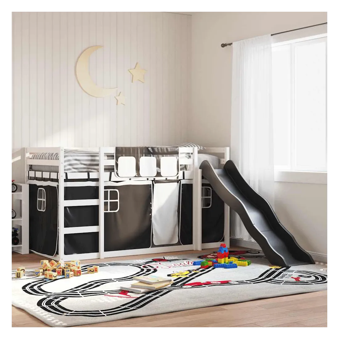Ce lit superposé en bois est élégant et fonctionnel, ce qui en fait un supplément parfait à toute pièce dont l'espace est limité. Bois de pin massif : ce lit superposé est fabriqué en bois de pin massif pour plus de stabilité et de durabilité. Le bois de pin a un grain droit et les nœuds donnent au matériau son aspect rustique caractéristique.Très amusant : vous pouvez combiner les rideaux avec le lit superposé bas pour créer la base secrète de votre enfant, ce qui permet de s’amuser à l’heure du coucher et d’ajouter un point d'intérêt à la chambre à coucher !Barrières de sécurité : le lit supérieur est équipé de garde-corps de sécurité sur les 4 côtés, afin que votre enfant puisse dormir sans craindre de tomber.Échelle et toboggan pratiques : ce lit superposé est doté d'un toboggan amusant qui apporte de la joie et transforme leur chambre en une aire de jeux intérieure. La combinaison d'une échelle d'escalade et d'un toboggan rend l'heure du coucher plus vivante et plus intéressante pour les enfants.Lattes robustes : les lattes de contreplaqué assurent une bonne répartition du poids, garantissant que le matelas reste en place à chaque torsion de votre corps pendant le sommeil. Bon à savoir :Un matelas n'est pas inclus avec ce lit. Nous offrons une sélection variée de matelas. Vous pouvez consulter notre boutique pour trouver un matelas assorti. Attention :Pour éviter qu'il ne bascule, ce produit doit être utilisé avec le dispositif de fixation murale fourni.