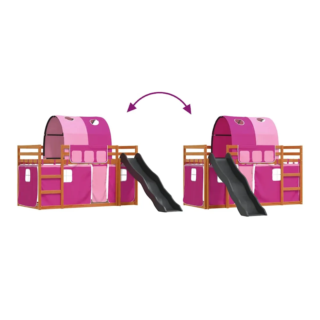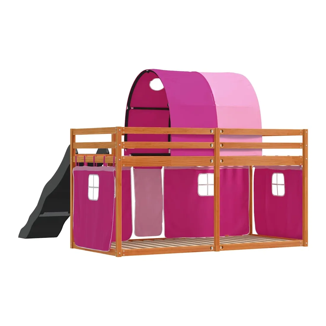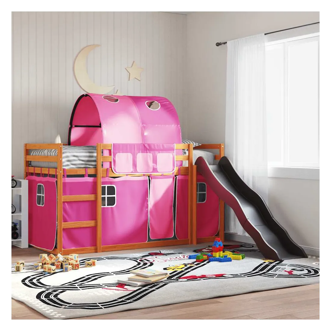 Ce lit superposé en bois est élégant et fonctionnel, ce qui en fait un supplément parfait à toute pièce dont l'espace est limité. Bois de pin massif : ce lit superposé est fabriqué en bois de pin massif pour plus de stabilité et de durabilité. Le bois de pin a un grain droit et les nœuds donnent au matériau son aspect rustique caractéristique.Très amusant : vous pouvez combiner les rideaux avec le lit superposé bas pour créer la base secrète de votre enfant, ce qui permet de s’amuser à l’heure du coucher et d’ajouter un point d'intérêt à la chambre à coucher !Barrières de sécurité : le lit supérieur est équipé de garde-corps de sécurité sur les 4 côtés, afin que votre enfant puisse dormir sans craindre de tomber.Échelle et toboggan pratiques : ce lit superposé est doté d'un toboggan amusant qui apporte de la joie et transforme leur chambre en une aire de jeux intérieure. La combinaison d'une échelle d'escalade et d'un toboggan rend l'heure du coucher plus vivante et plus intéressante pour les enfants.Lattes robustes : les lattes de contreplaqué assurent une bonne répartition du poids, garantissant que le matelas reste en place à chaque torsion de votre corps pendant le sommeil. Bon à savoir :Un matelas n'est pas inclus avec ce lit. Nous offrons une sélection variée de matelas. Vous pouvez consulter notre boutique pour trouver un matelas assorti. Attention :Pour éviter qu'il ne bascule, ce produit doit être utilisé avec le dispositif de fixation murale fourni.