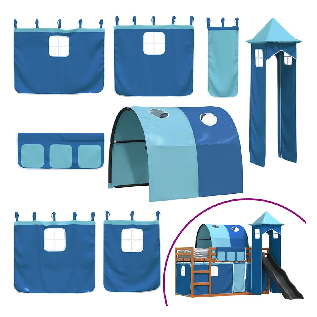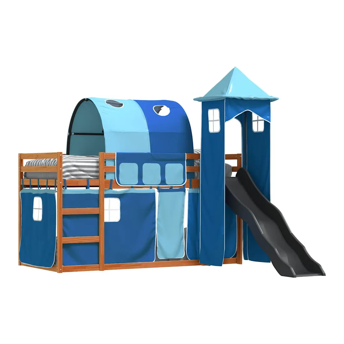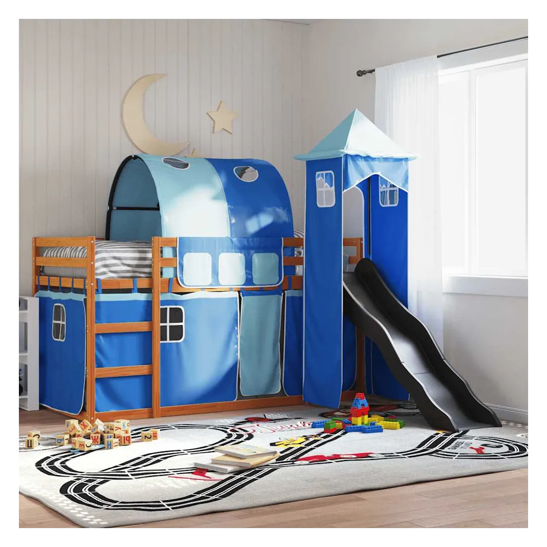 Ce lit superposé en bois est élégant et fonctionnel, ce qui en fait un supplément parfait à toute pièce dont l'espace est limité. Bois de pin massif : ce lit superposé est fabriqué en bois de pin massif pour plus de stabilité et de durabilité. Le bois de pin a un grain droit et les nœuds donnent au matériau son aspect rustique caractéristique.Très amusant : vous pouvez combiner les rideaux avec le lit superposé bas pour créer la base secrète de votre enfant, ce qui permet de s’amuser à l’heure du coucher et d’ajouter un point d'intérêt à la chambre à coucher !Barrières de sécurité : le lit supérieur est équipé de garde-corps de sécurité sur les 4 côtés, afin que votre enfant puisse dormir sans craindre de tomber.Échelle et toboggan pratiques : ce lit superposé est doté d'un toboggan amusant qui apporte de la joie et transforme leur chambre en une aire de jeux intérieure. La combinaison d'une échelle d'escalade et d'un toboggan rend l'heure du coucher plus vivante et plus intéressante pour les enfants.Lattes robustes : les lattes de contreplaqué assurent une bonne répartition du poids, garantissant que le matelas reste en place à chaque torsion de votre corps pendant le sommeil. Bon à savoir :Un matelas n'est pas inclus avec ce lit. Nous offrons une sélection variée de matelas. Vous pouvez consulter notre boutique pour trouver un matelas assorti. Attention :Pour éviter qu'il ne bascule, ce produit doit être utilisé avec le dispositif de fixation murale fourni.