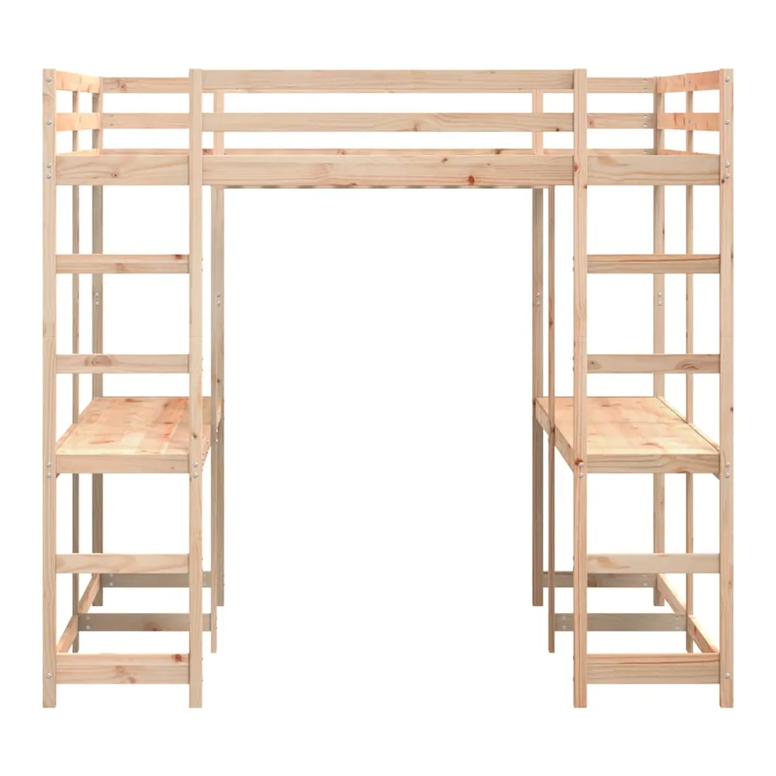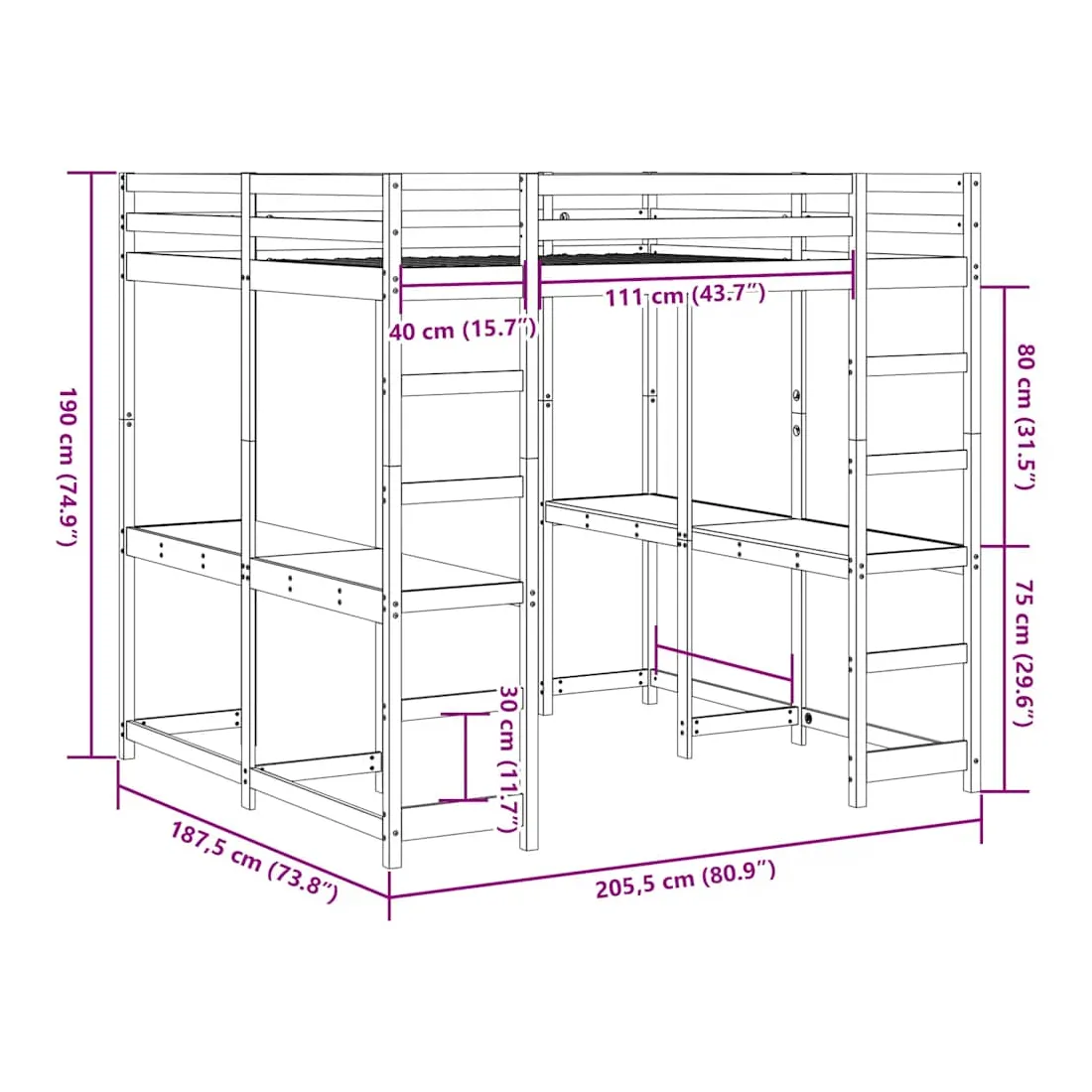 Ce lit mezzanine en bois est élégant et fonctionnel, ce qui en fait un supplément parfait à toute pièce dont l'espace est limité. Robuste et stable : le bois de pin massif est connu pour sa résistance et sa durabilité. Ses grains droits et ses nœuds distinctifs contribuent à son charme rustique.Barrières de sécurité : le lit intermédiaire est équipé de garde-corps de sécurité sur les 4 côtés, afin que vous puissiez dormir sans craindre de tomber.Bureau spacieux : le bureau est suffisamment grand pour accueillir un ordinateur portable et des livres, créant ainsi un espace d'étude confortable pour vous.Échelle pratique : l'échelle de ce lit mezzanine en bois facilite et sécurise le sommeil à l'étage supérieur et offre une sécurité et une stabilité suffisantes. Bon à savoir :La livraison comprend uniquement les cadres de lit. Les matelas ne sont pas inclus. Vous pouvez consulter notre boutique pour trouver les matelas assortis.Les vis et les chevilles pour l'intérieur du mur ne sont pas incluses. Nous vous conseillons de trouver et d'utiliser des vis et des chevilles adaptées spécifiquement à vos murs. Si vous n'êtes pas sûr, vous pouvez consulter un professionnel. Veuillez lire et suivre chaque étape des instructions.