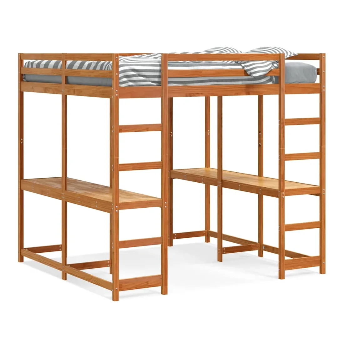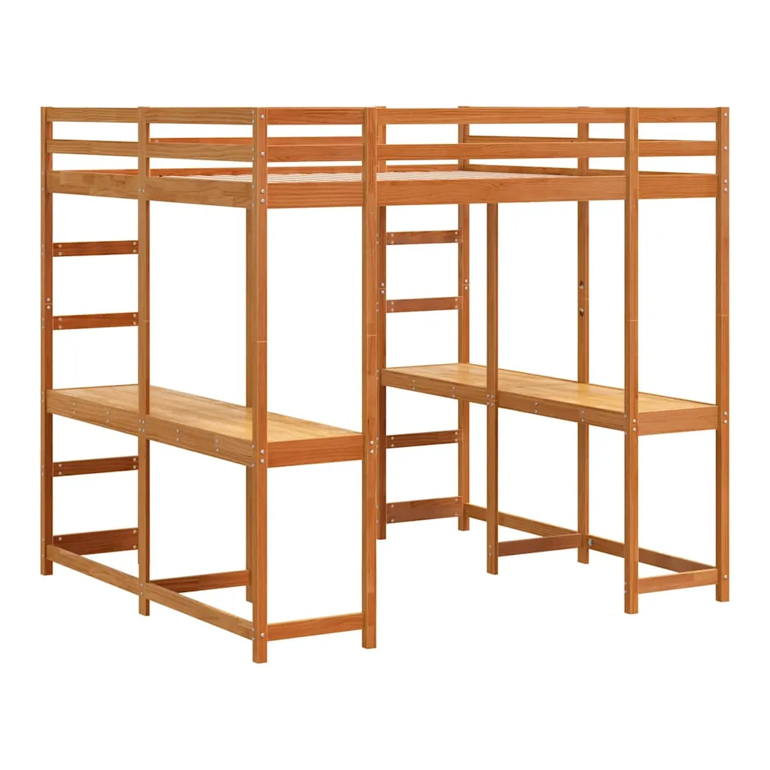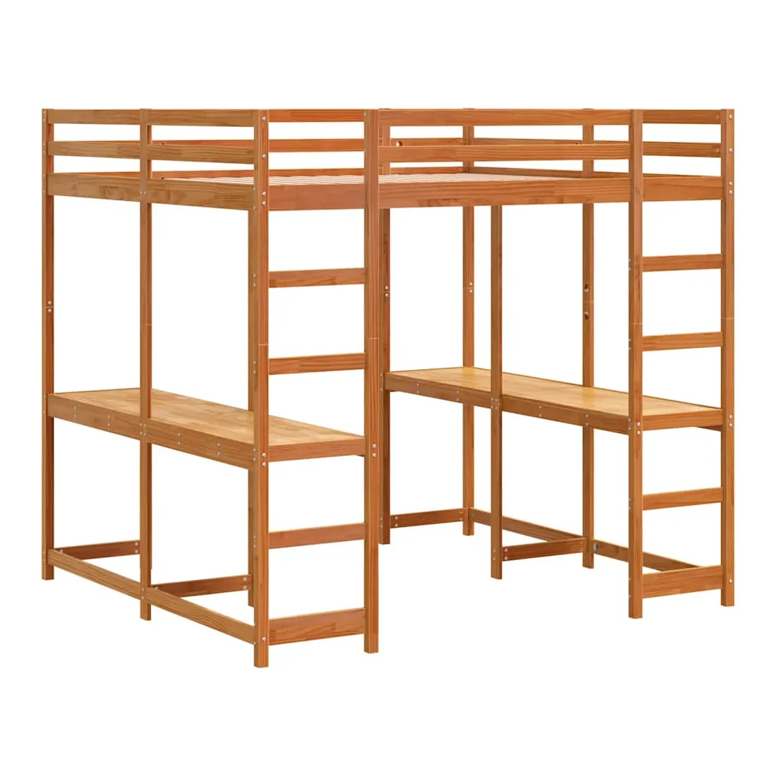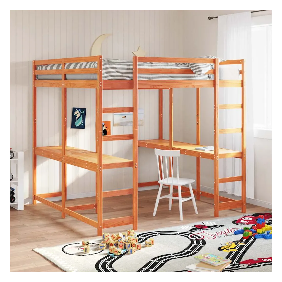 vidaXLCe lit mezzanine en bois est élégant et fonctionnel, ce qui en fait un supplément parfait à toute pièce dont l'espace est limité. Robuste et stable : le bois de pin massif est connu pour sa résistance et sa durabilité. Ses grains droits et ses nœuds distinctifs contribuent à son charme rustique.Barrières de sécurité : le lit intermédiaire est équipé de garde-corps de sécurité sur les 4 côtés, afin que vous puissiez dormir sans craindre de tomber.Bureau spacieux : le bureau est suffisamment grand pour accueillir un ordinateur portable et des livres, créant ainsi un espace d'étude confortable pour vous.Échelle pratique : l'échelle de ce lit mezzanine en bois facilite et sécurise le sommeil à l'étage supérieur et offre une sécurité et une stabilité suffisantes. Bon à savoir :La livraison comprend uniquement les cadres de lit. Les matelas ne sont pas inclus. Vous pouvez consulter notre boutique pour trouver les matelas assortis.Les vis et les chevilles pour l'intérieur du mur ne sont pas incluses. Nous vous conseillons de trouver et d'utiliser des vis et des chevilles adaptées spécifiquement à vos murs. Si vous n'êtes pas sûr, vous pouvez consulter un professionnel. Veuillez lire et suivre chaque étape des instructions.