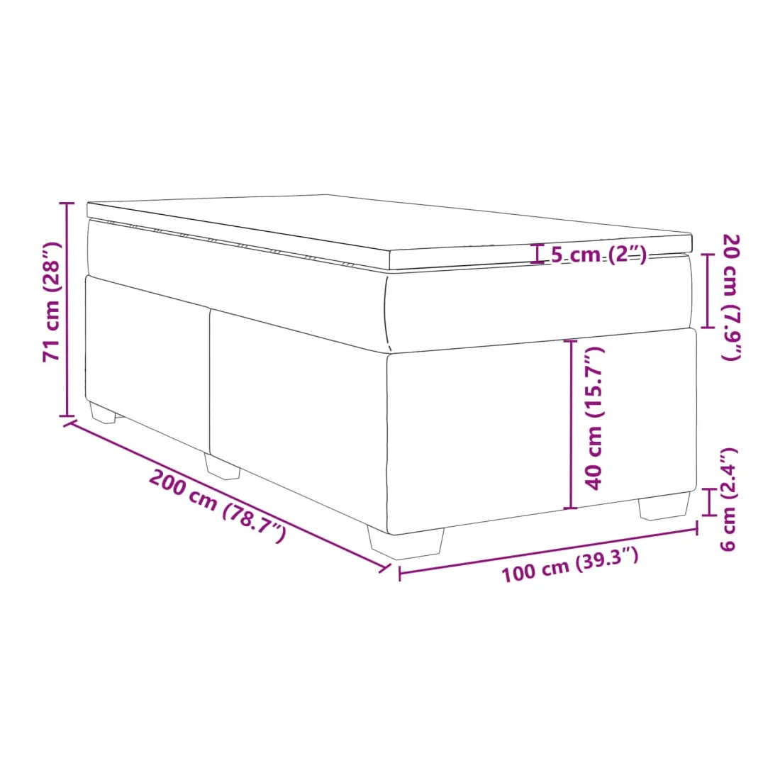 - Dimensions : 100 x 200 x 20 cm (l x L x H)