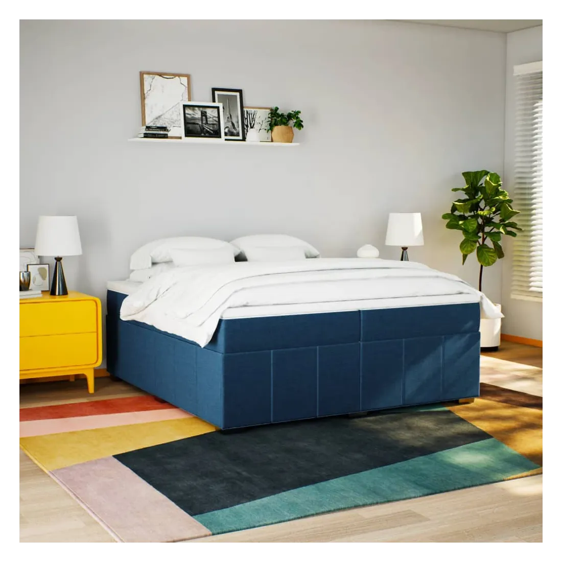 Sommier à lattes de lit avec matelas Bleu 200x200 cm Tissu