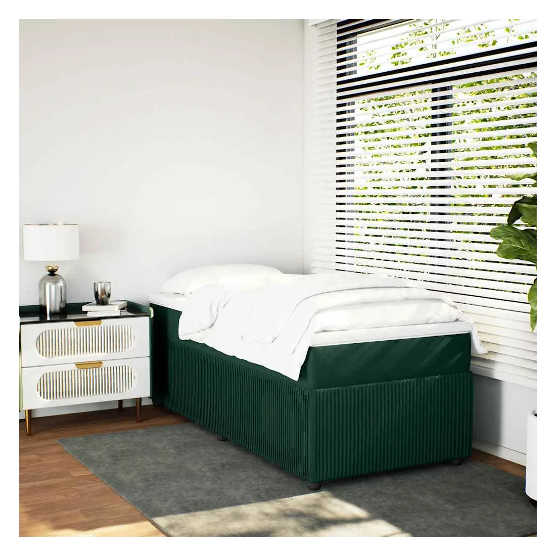 Utilisez ce lit à sommier pour profiter d'une nuit de sommeil réparatrice ! Il vous offre une relaxation maximale et un sommeil agréable. Velours doux : le velours est un tissu doux et luxueux qui se reconnaît à son tas dense de fibres uniformément coupées qui ont une touche lisse. Le tissu en velours présente un toucher doux distinctif, ce qui le rend confortable au toucher.Matelas à ressorts ensachés : ce matelas à ressorts ensachés comporte des ressorts ensachés individuels qui fonctionnent indépendamment pour offrir un soutien personnalisé en réagissant uniquement à la pression exercée dans chaque zone. Cette conception empêche « l'enroulement » et réduit le transfert de mouvement par rapport aux matelas traditionnels à ressorts ouverts. Chaque ressort ensaché soutient le corps individuellement.Surmatelas confortable : ce surmatelas améliore le soutien et le confort grâce à sa surface douce et respirante, tout en prolongeant la durée de vie de votre matelas. Sa housse amovible permet un lavage facile, ce qui facilite l'entretien.Lattes pour un soutien optimal : le cadre de lit est complété par des lattes pour offrir un soutien et une respirabilité essentiels à votre matelas.Pieds stables et durables : ce lit est soutenu par des pieds robustes, ce qui garantit sa stabilité, sa sécurité et sa fermeté. Bon à savoir :Pour des raisons d'hygiène, le matelas ne peut pas être retourné si l'emballage est retiré ou ouvert.