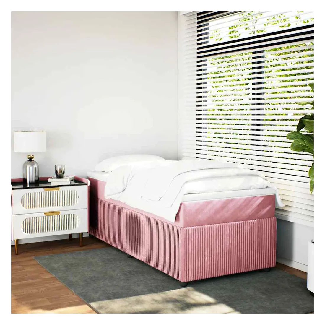 Utilisez ce lit à sommier pour profiter d'une nuit de sommeil réparatrice ! Il vous offre une relaxation maximale et un sommeil agréable. Velours doux : le velours est un tissu doux et luxueux qui se reconnaît à son tas dense de fibres uniformément coupées qui ont une touche lisse. Le tissu en velours présente un toucher doux distinctif, ce qui le rend confortable au toucher.Matelas à ressorts ensachés : ce matelas à ressorts ensachés comporte des ressorts ensachés individuels qui fonctionnent indépendamment pour offrir un soutien personnalisé en réagissant uniquement à la pression exercée dans chaque zone. Cette conception empêche « l'enroulement » et réduit le transfert de mouvement par rapport aux matelas traditionnels à ressorts ouverts. Chaque ressort ensaché soutient le corps individuellement.Surmatelas confortable : ce surmatelas améliore le soutien et le confort grâce à sa surface douce et respirante, tout en prolongeant la durée de vie de votre matelas. Sa housse amovible permet un lavage facile, ce qui facilite l'entretien.Lattes pour un soutien optimal : le cadre de lit est complété par des lattes pour offrir un soutien et une respirabilité essentiels à votre matelas.Pieds stables et durables : ce lit est soutenu par des pieds robustes, ce qui garantit sa stabilité, sa sécurité et sa fermeté. Bon à savoir :Pour des raisons d'hygiène, le matelas ne peut pas être retourné si l'emballage est retiré ou ouvert.