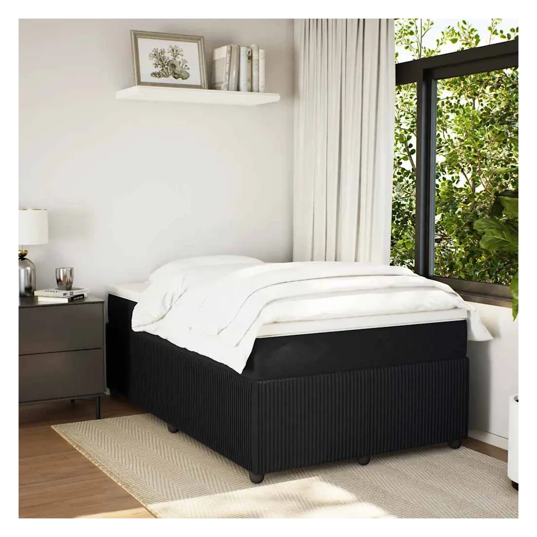 Utilisez ce lit à sommier pour profiter d'une nuit de sommeil réparatrice ! Il vous offre une relaxation maximale et un sommeil agréable. Velours doux : le velours est un tissu doux et luxueux qui se reconnaît à son tas dense de fibres uniformément coupées qui ont une touche lisse. Le tissu en velours présente un toucher doux distinctif, ce qui le rend confortable au toucher.Matelas à ressorts ensachés : ce matelas à ressorts ensachés comporte des ressorts ensachés individuels qui fonctionnent indépendamment pour offrir un soutien personnalisé en réagissant uniquement à la pression exercée dans chaque zone. Cette conception empêche « l'enroulement » et réduit le transfert de mouvement par rapport aux matelas traditionnels à ressorts ouverts. Chaque ressort ensaché soutient le corps individuellement.Surmatelas confortable : ce surmatelas améliore le soutien et le confort grâce à sa surface douce et respirante, tout en prolongeant la durée de vie de votre matelas. Sa housse amovible permet un lavage facile, ce qui facilite l'entretien.Lattes pour un soutien optimal : le cadre de lit est complété par des lattes pour offrir un soutien et une respirabilité essentiels à votre matelas.Pieds stables et durables : ce lit est soutenu par des pieds robustes, ce qui garantit sa stabilité, sa sécurité et sa fermeté. Bon à savoir :Pour des raisons d'hygiène, le matelas ne peut pas être retourné si l'emballage est retiré ou ouvert.