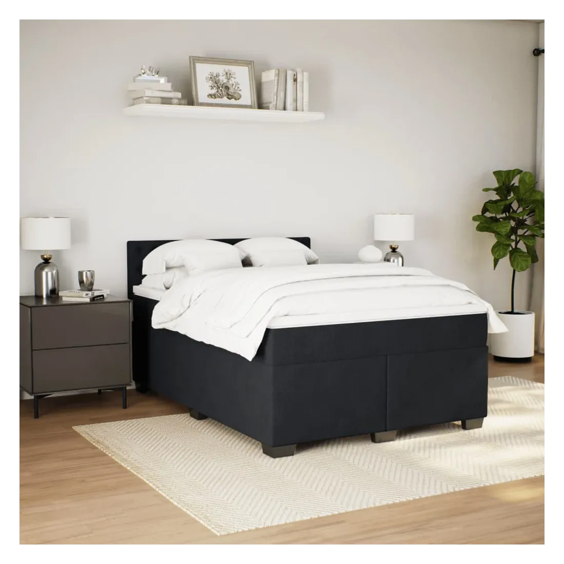 Sommier à lattes de lit et matelas Noir 160x200 cm Velours