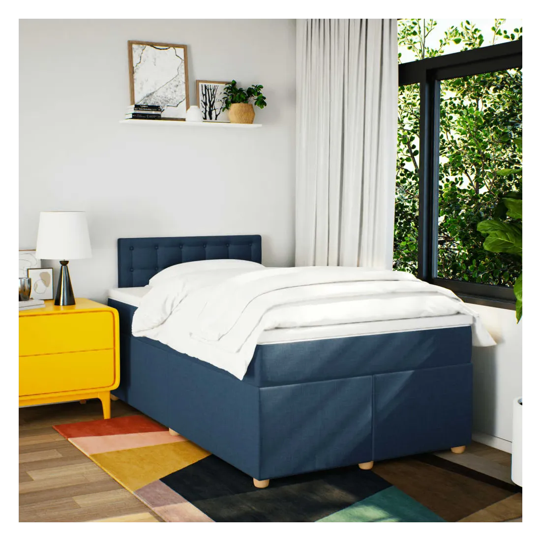 Utilisez ce lit à sommier pour profiter d'une nuit de sommeil réparatrice ! Il vous offre une relaxation maximale et un sommeil agréable. Matériau doux et durable : le tissu en polyester allie douceur, respirabilité et durabilité, vous garantissant un confort et une convivialité ultimes.Matelas à ressorts ensachés : ce matelas à ressorts ensachés comporte des ressorts ensachés individuels qui fonctionnent indépendamment pour offrir un soutien personnalisé en réagissant uniquement à la pression exercée dans chaque zone. Cette conception empêche « l'enroulement » et réduit le transfert de mouvement par rapport aux matelas traditionnels à ressorts ouverts. Chaque ressort ensaché soutient le corps individuellement.Surmatelas confortable : ce surmatelas améliore le soutien et le confort grâce à sa surface douce et respirante, tout en prolongeant la durée de vie de votre matelas. Sa housse amovible permet un lavage facile, ce qui facilite l'entretien.Lattes pour un soutien optimal : le cadre de lit est complété par des lattes pour offrir un soutien et une respirabilité essentiels à votre matelas. Bon à savoir :Pour des raisons d'hygiène, le matelas ne peut pas être retourné si l'emballage est retiré ou ouvert.