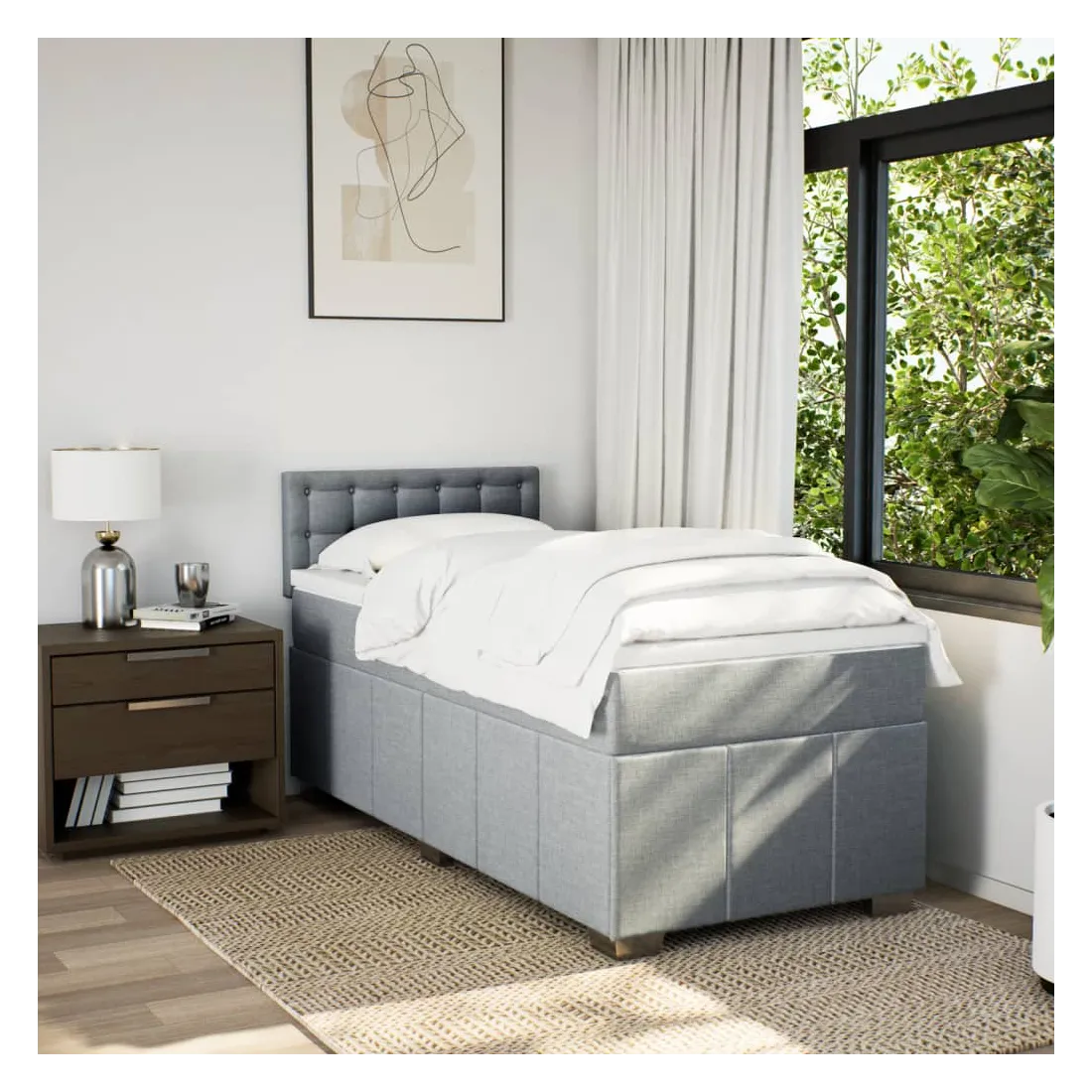 Utilisez ce lit à sommier pour profiter d'une nuit de sommeil réparatrice ! Il vous offre une relaxation maximale et un sommeil agréable. Matériau doux et durable : le tissu en polyester allie douceur, respirabilité et durabilité, vous garantissant un confort et une convivialité ultimes.Matelas à ressorts ensachés : ce matelas à ressorts ensachés comporte des ressorts ensachés individuels qui fonctionnent indépendamment pour offrir un soutien personnalisé en réagissant uniquement à la pression exercée dans chaque zone. Cette conception empêche « l'enroulement » et réduit le transfert de mouvement par rapport aux matelas traditionnels à ressorts ouverts. Chaque ressort ensaché soutient le corps individuellement.Tête de lit réglable en hauteur : la tête de lit est réglable en hauteur pour s'adapter à vos préférences.Surmatelas confortable : ce surmatelas améliore le soutien et le confort grâce à sa surface douce et respirante, tout en prolongeant la durée de vie de votre matelas. Sa housse amovible permet un lavage facile, ce qui facilite l'entretien.Lattes pour un soutien optimal : le cadre de lit est complété par des lattes pour offrir un soutien et une respirabilité essentiels à votre matelas. Bon à savoir :Pour des raisons d'hygiène, le matelas ne peut pas être retourné si l'emballage est retiré ou ouvert.