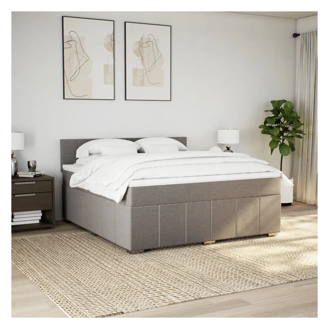 Sommier à lattes de lit avec matelas Taupe 180x200 cm Tissu