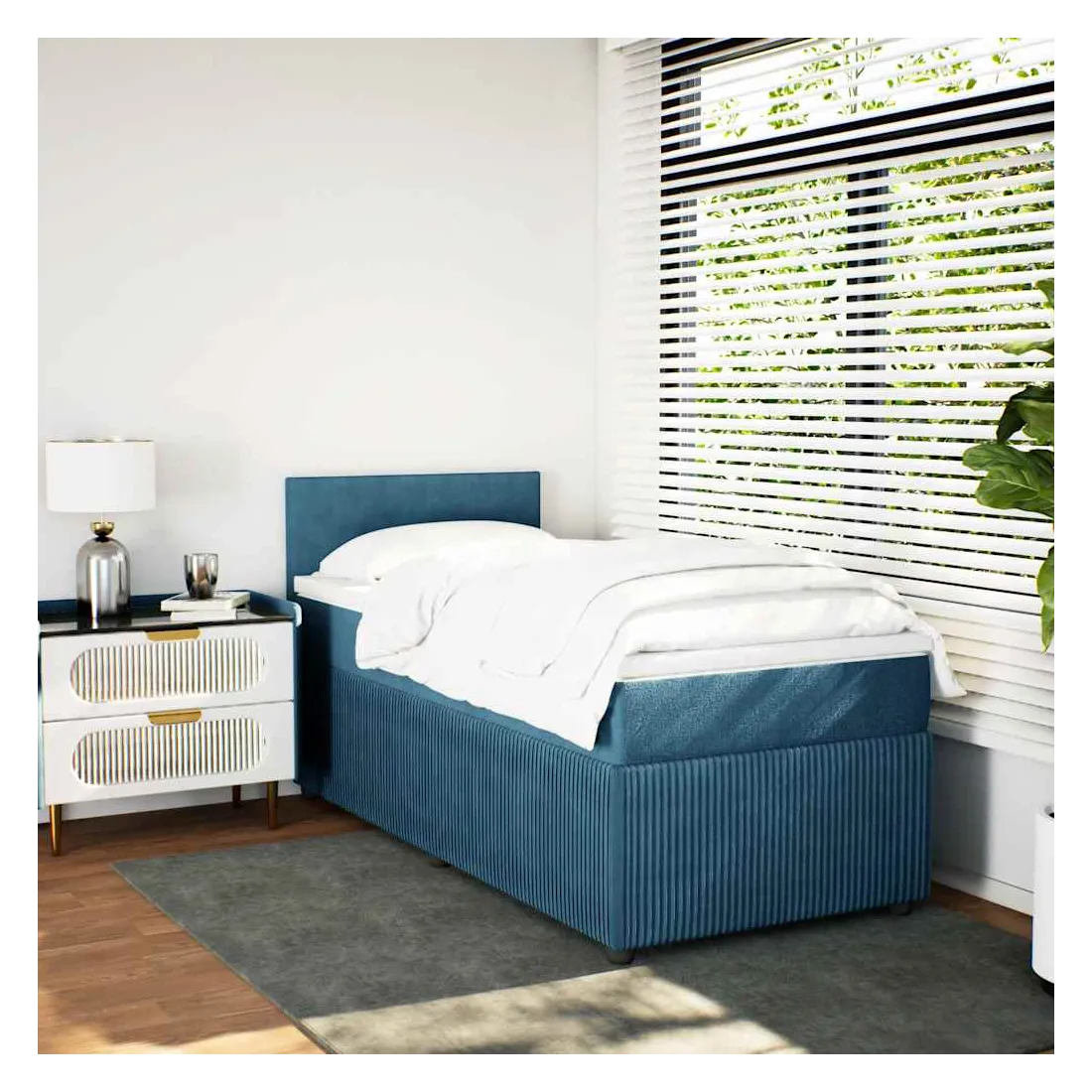 Sommier à lattes de lit avec matelas bleu 90x200 cm velours