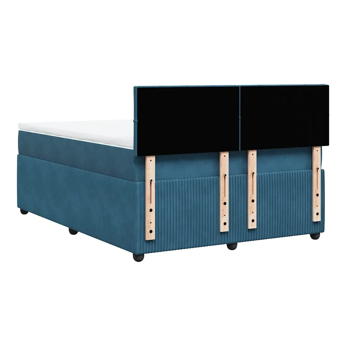 Sommier à lattes de lit et matelas bleu 160x200 cm velours