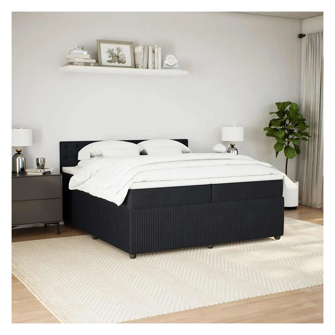 Sommier à lattes de lit et matelas Noir 200x200 cm Velours