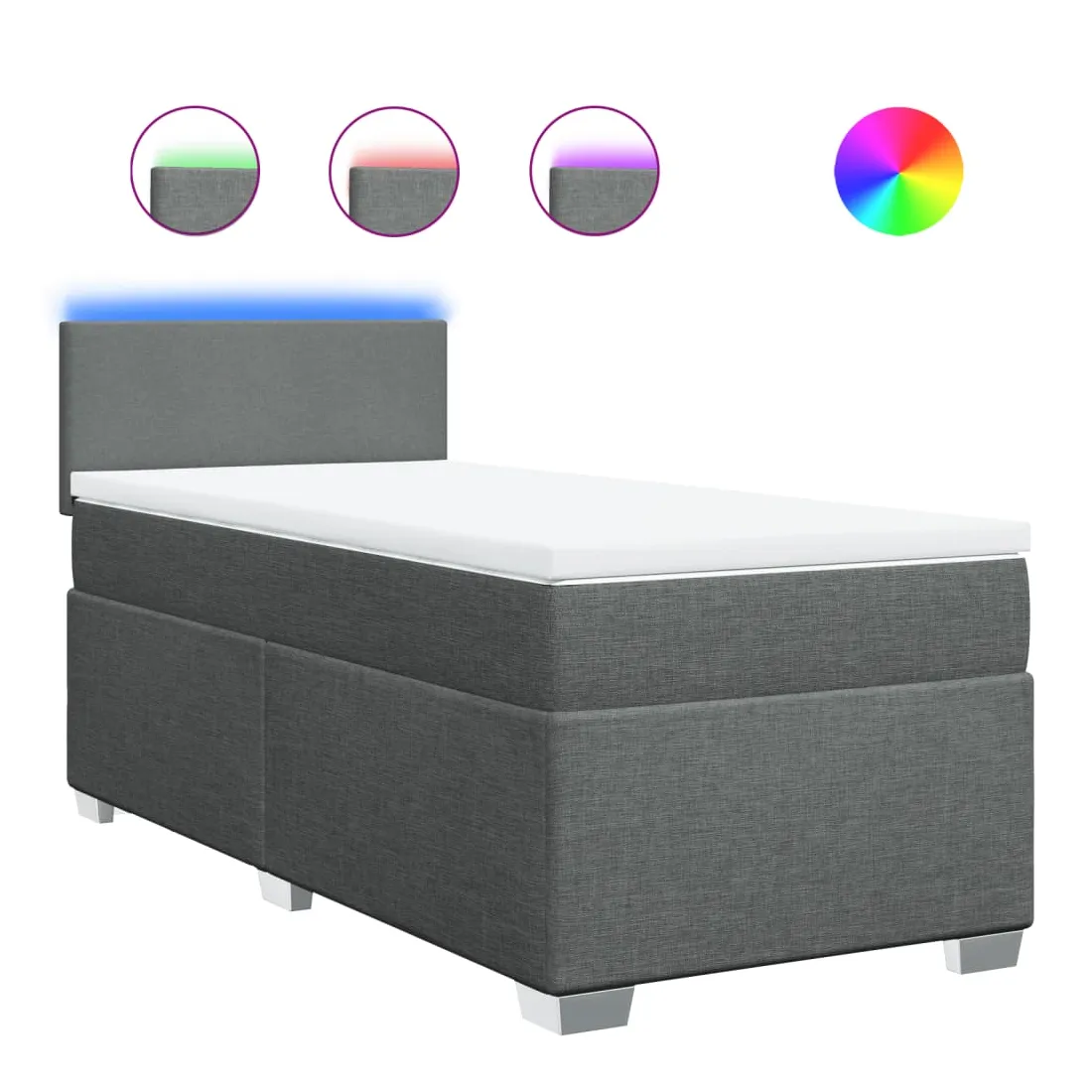Utilisez ce lit à sommier pour profiter d'une nuit de sommeil réparatrice ! Il vous offre une relaxation maximale et un sommeil agréable. Matériau doux et durable : le tissu en polyester allie douceur, respirabilité et durabilité, vous garantissant un confort et une convivialité ultimes.Matelas à ressorts ensachés : ce matelas à ressorts ensachés comporte des ressorts ensachés individuels qui fonctionnent indépendamment pour offrir un soutien personnalisé en réagissant uniquement à la pression exercée dans chaque zone. Cette conception empêche « l'enroulement » et réduit le transfert de mouvement par rapport aux matelas traditionnels à ressorts ouverts. Chaque ressort ensaché soutient le corps individuellement.Lumières LED pour une ambiance agréable : ce lit est équipé de lumières LED qui peuvent être facilement réglées pour créer un spectacle lumineux personnalisé. Vous pouvez personnaliser les modes, les couleurs et la luminosité pour améliorer l'ambiance de votre espace intérieur.Surmatelas confortable : ce surmatelas améliore le soutien et le confort grâce à sa surface douce et respirante, tout en prolongeant la durée de vie de votre matelas. Sa housse amovible permet un lavage facile, ce qui facilite l'entretien. Bon à savoir :Ce produit est doté d'un connecteur USB qui nécessite une source d'alimentation USB de 5V certifiée (non incluse).Pour des raisons d'hygiène, le matelas ne peut pas être retourné si l'emballage est retiré ou ouvert.Seule la partie avec un symbole de ciseaux peut être coupée et seule la partie avec l'USB continuera à fonctionner comme avant.