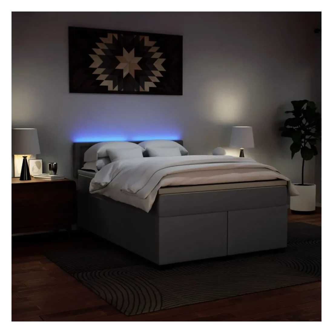 Utilisez ce lit à sommier pour profiter d'une nuit de sommeil réparatrice ! Il vous offre une relaxation maximale et un sommeil agréable. Longue durée de vie et entretien facile : le similicuir est un matériau très durable qui résiste aux taches, ce qui le rend facile à nettoyer avec un chiffon humide. Sa surface lisse lui confère un aspect élégant qui ressemble à celui du cuir véritable.Matelas à ressorts ensachés : ce matelas à ressorts ensachés comporte des ressorts ensachés individuels qui fonctionnent indépendamment pour offrir un soutien personnalisé en réagissant uniquement à la pression exercée dans chaque zone. Cette conception empêche « l'enroulement » et réduit le transfert de mouvement par rapport aux matelas traditionnels à ressorts ouverts. Chaque ressort ensaché soutient le corps individuellement.Lumières LED pour une ambiance agréable : ce lit est équipé de lumières LED qui peuvent être facilement réglées pour créer un spectacle lumineux personnalisé. Vous pouvez personnaliser les modes, les couleurs et la luminosité pour améliorer l'ambiance de votre espace intérieur.Surmatelas confortable : ce surmatelas améliore le soutien et le confort grâce à sa surface douce et respirante, tout en prolongeant la durée de vie de votre matelas. Sa housse amovible permet un lavage facile, ce qui facilite l'entretien. Bon à savoir :Ce produit est doté d'un connecteur USB qui nécessite une source d'alimentation USB de 5V certifiée (non incluse).Pour des raisons d'hygiène, le matelas ne peut pas être retourné si l'emballage est retiré ou ouvert.Seule la partie avec un symbole de ciseaux peut être coupée et seule la partie avec l'USB continuera à fonctionner comme avant.